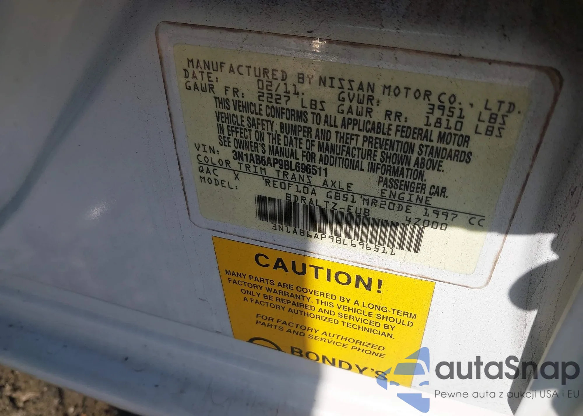 Kup Nissan Sentra VI (B16) z USA