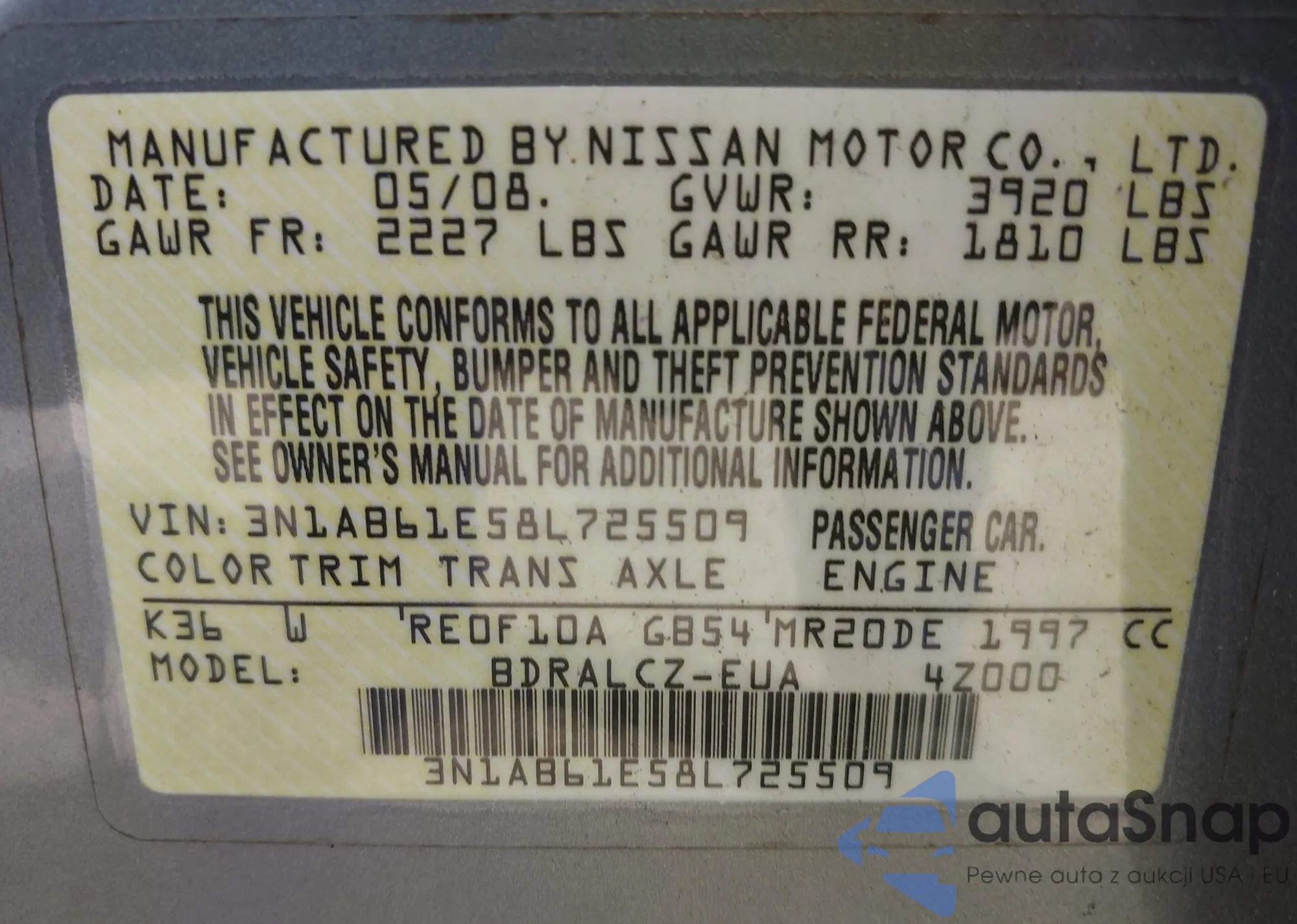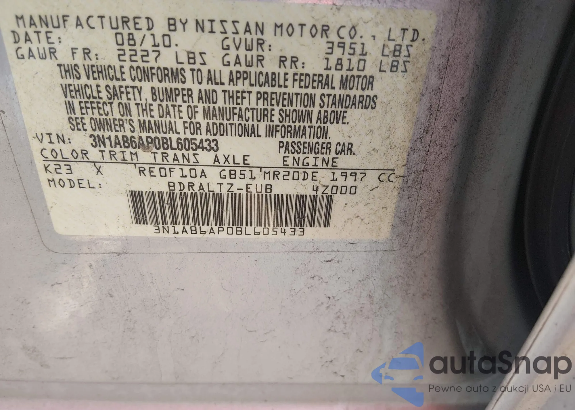 Kup Nissan Sentra VI (B16) z USA