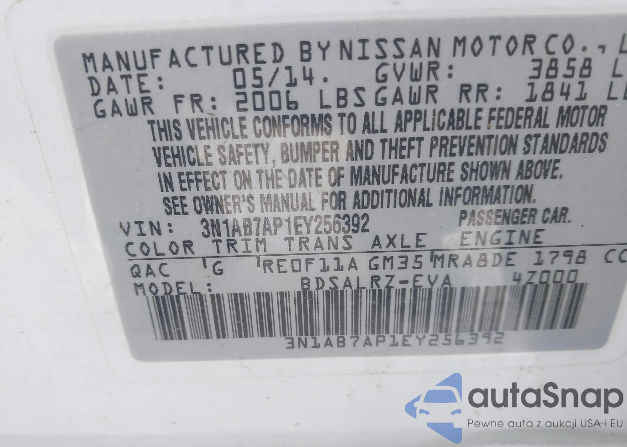 • VIN 3N1AB7AP1EY256392