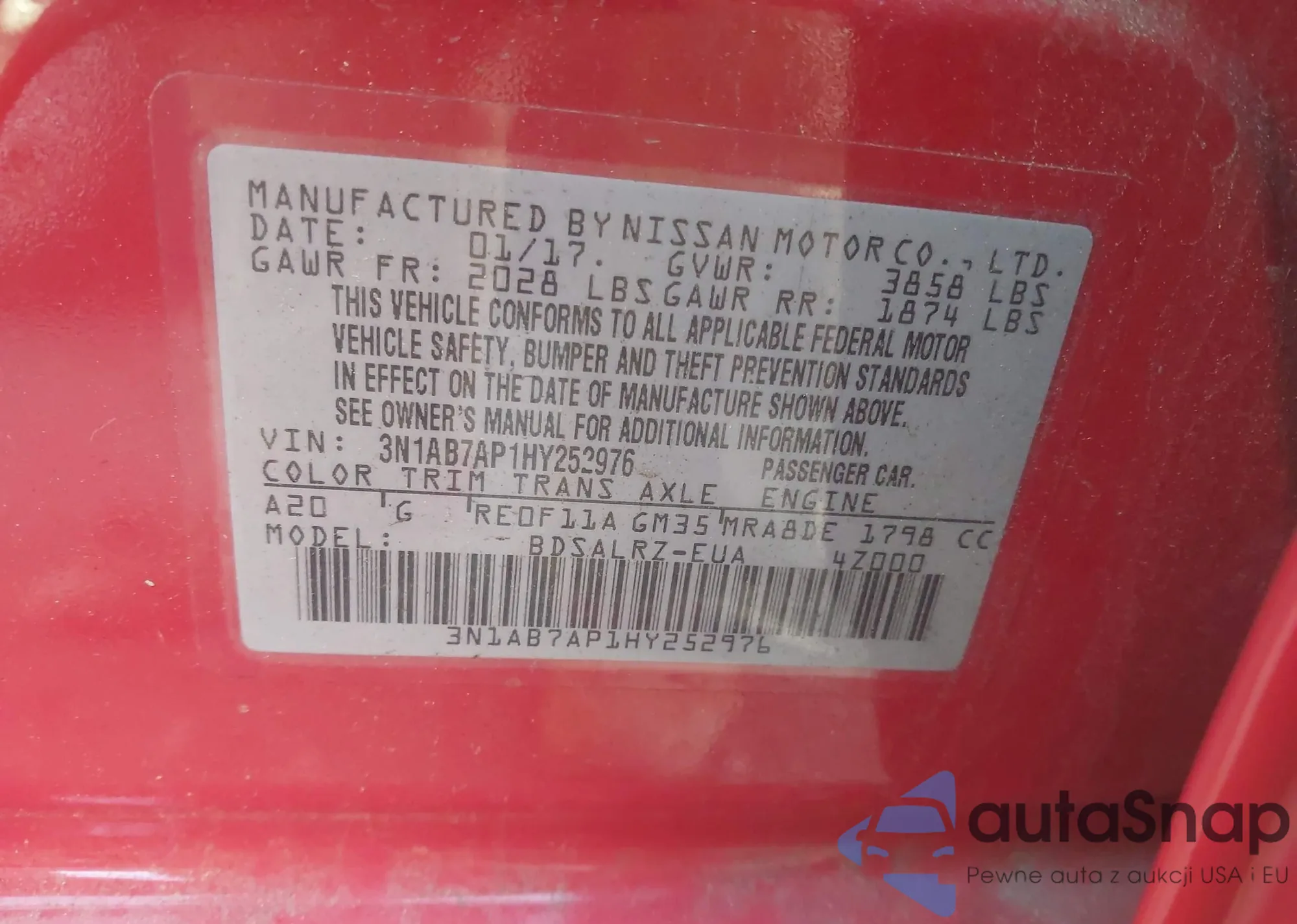 • VIN 3N1AB7AP1HY252976