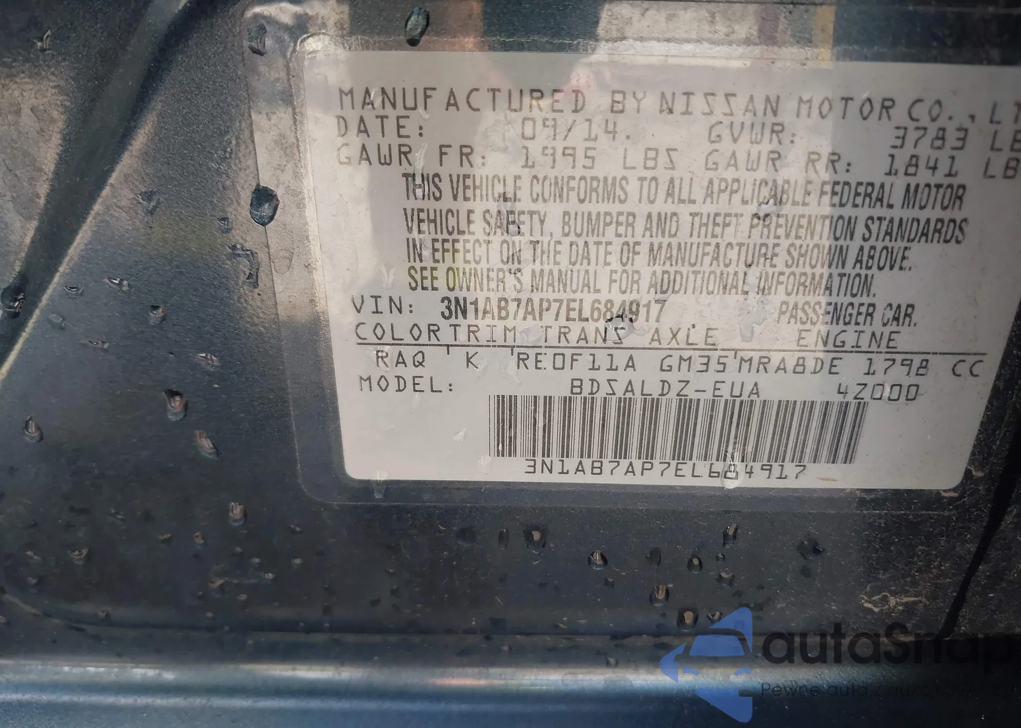 • VIN 3N1AB7AP7EL684917