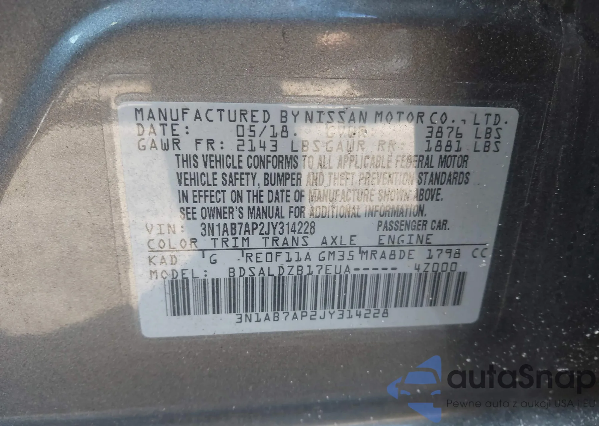 • VIN 3N1AB7AP2JY314228