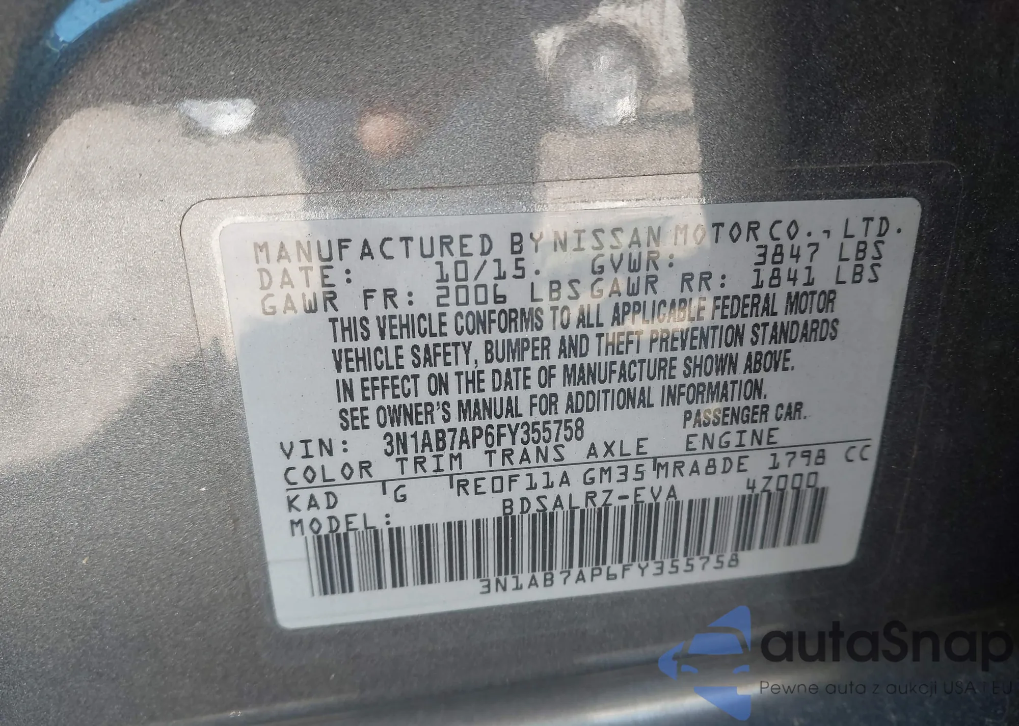 • VIN 3N1AB7AP6FY355758