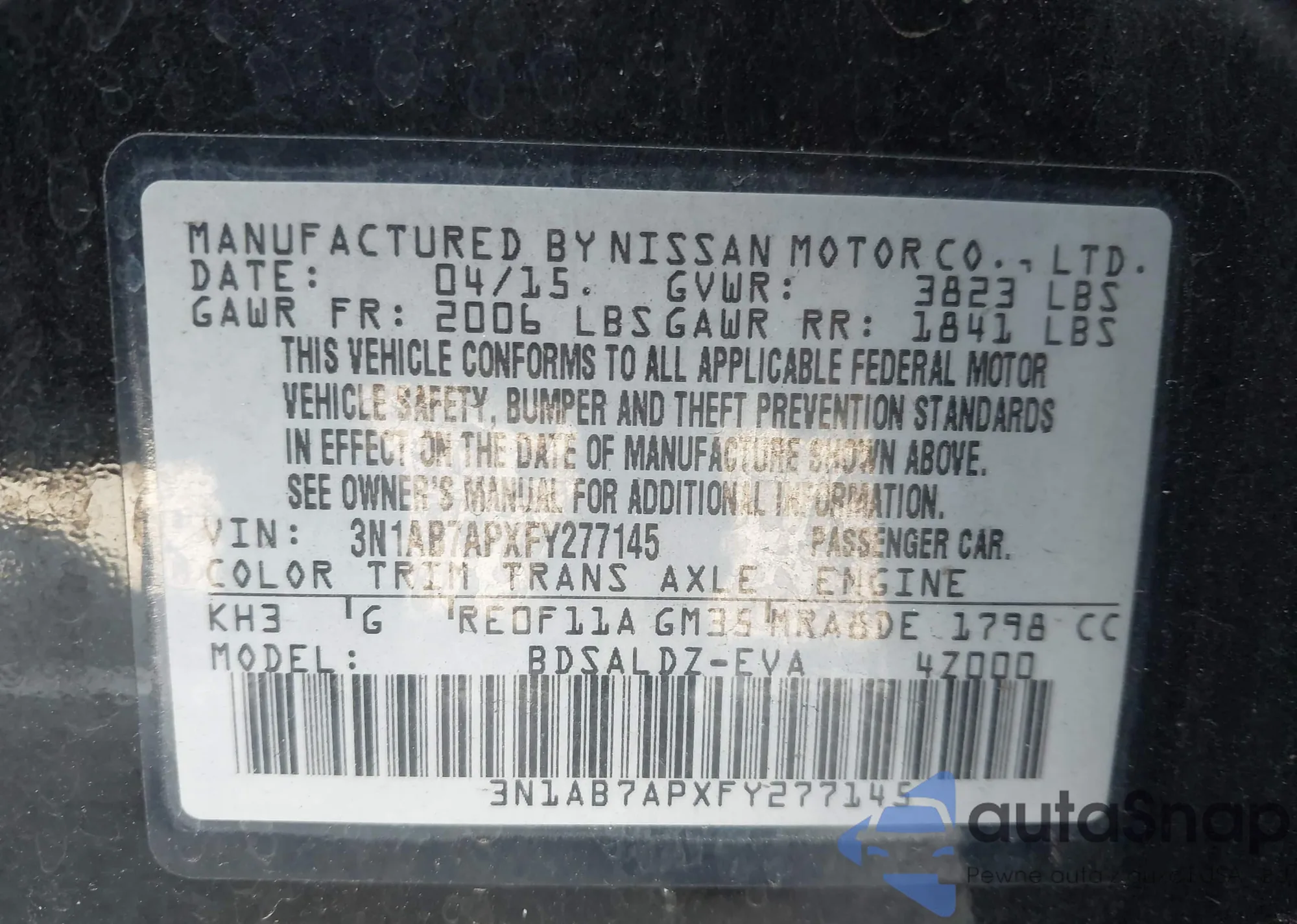 • VIN 3N1AB7AP2FY314785