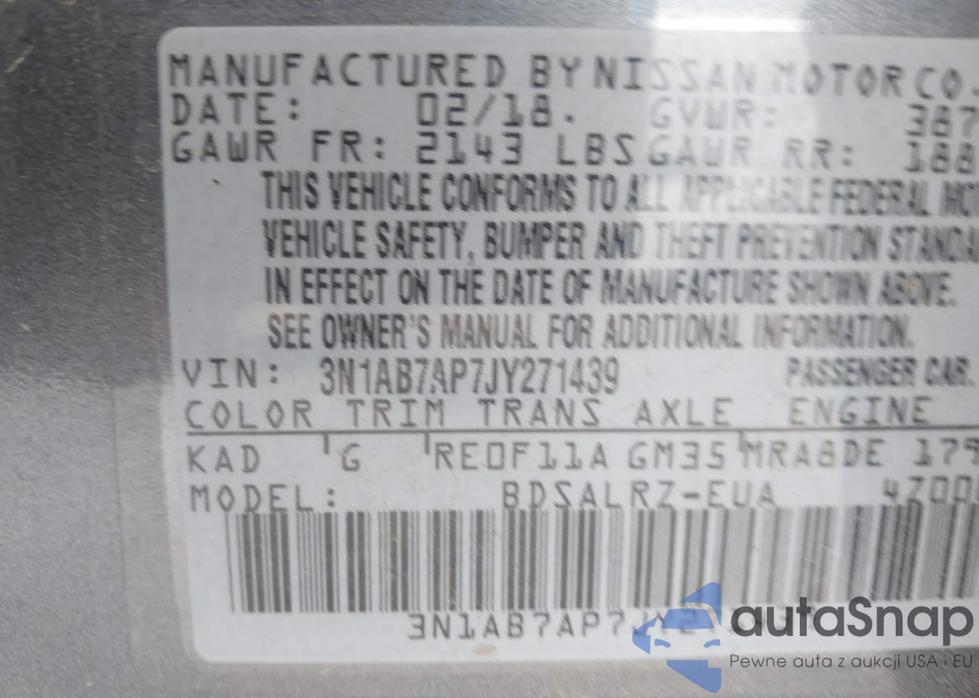 • VIN 3N1AB7AP7JY271439