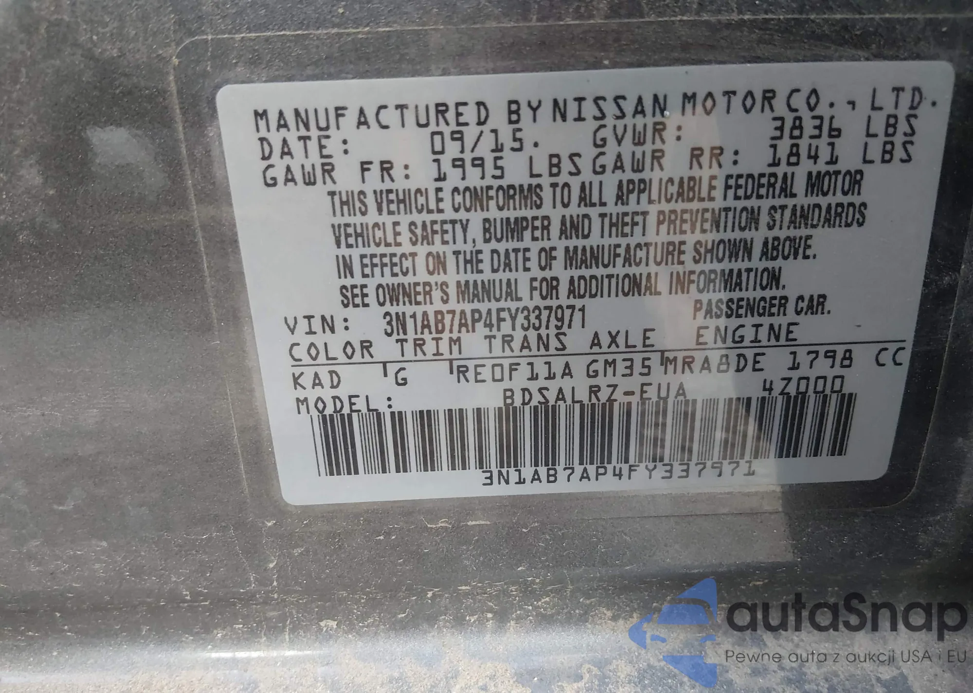 • VIN 3N1AB7AP4FY337971