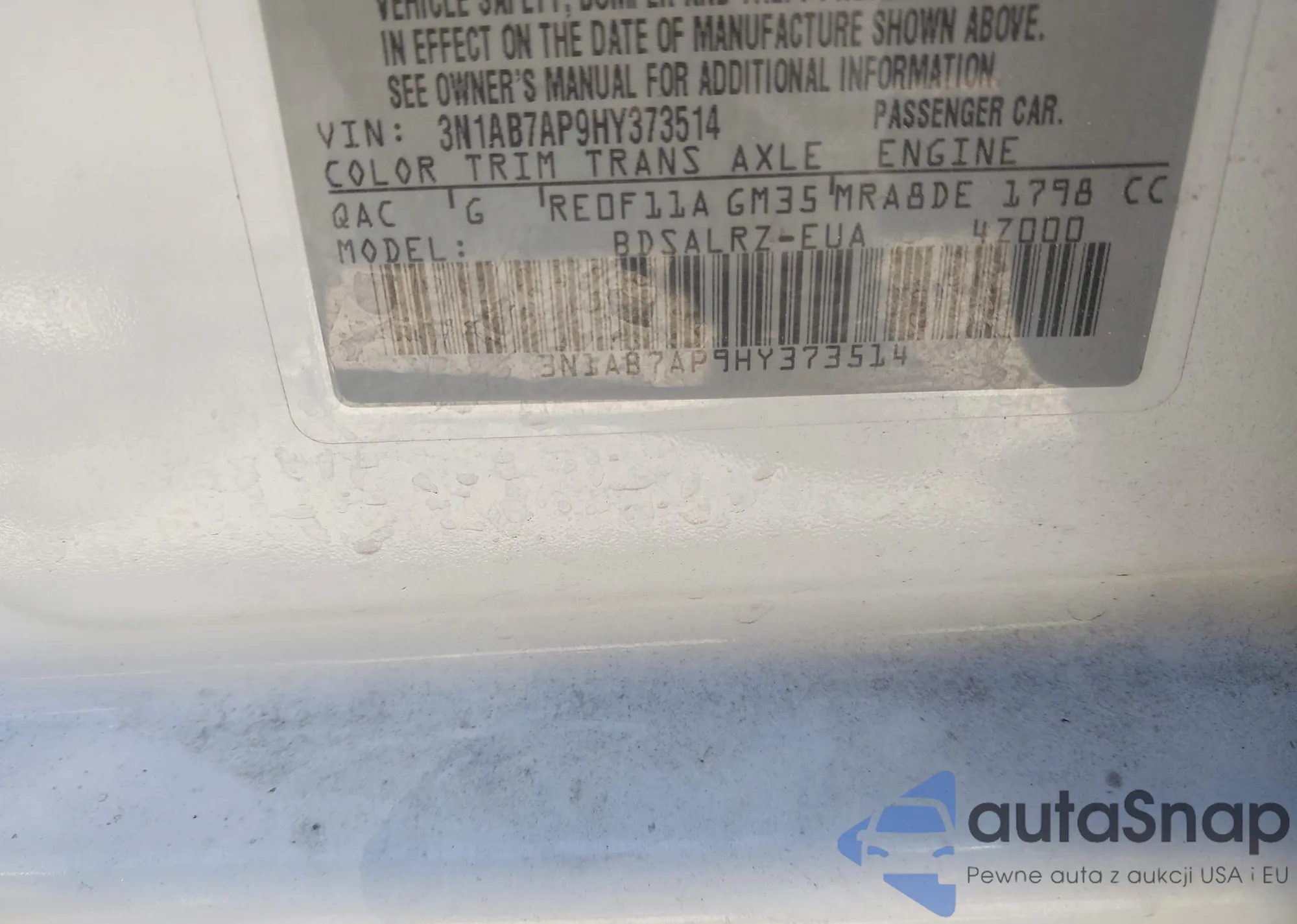 • VIN 3N1AB7AP9HY373514