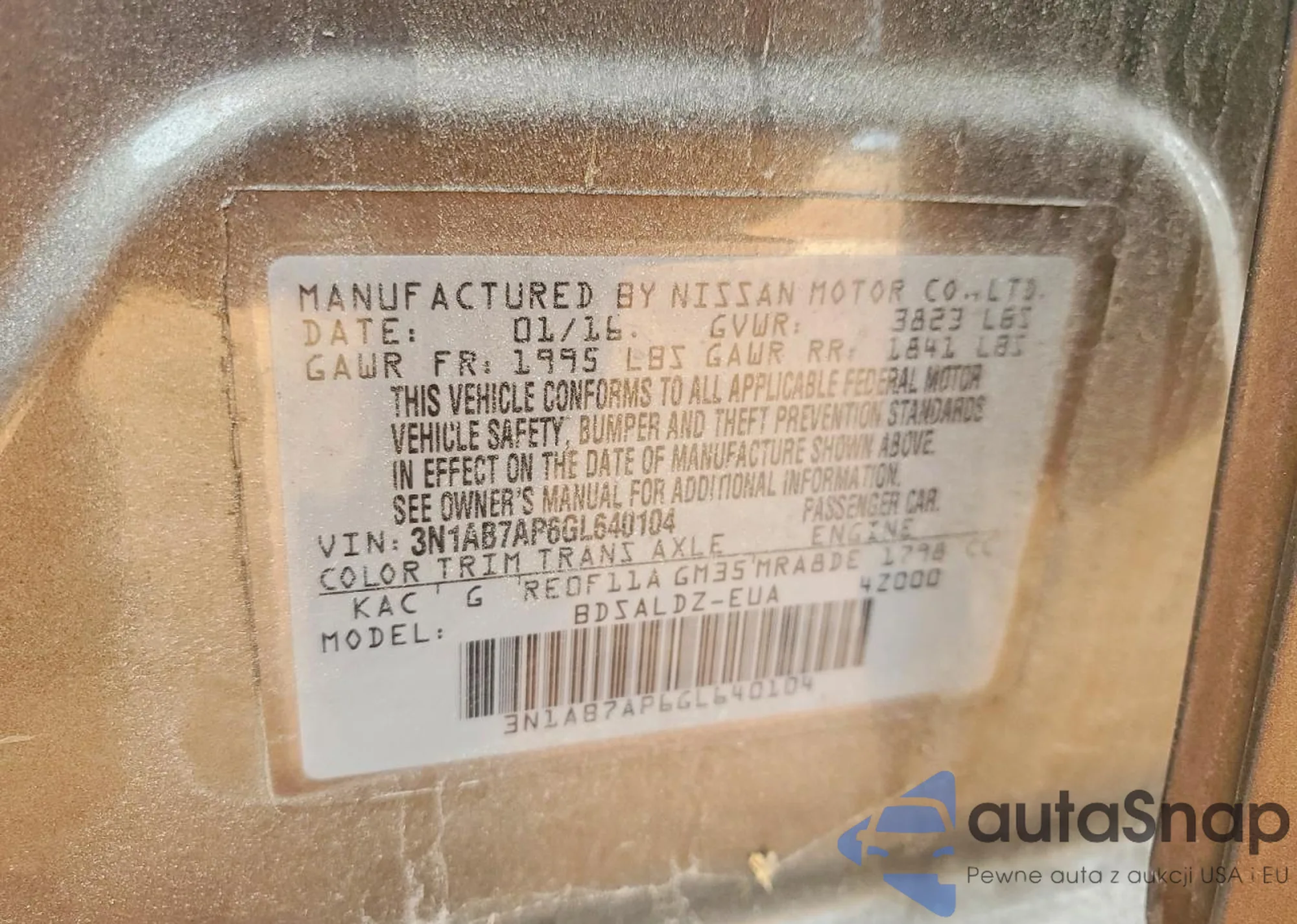 • VIN 3N1AB7AP6GY281453