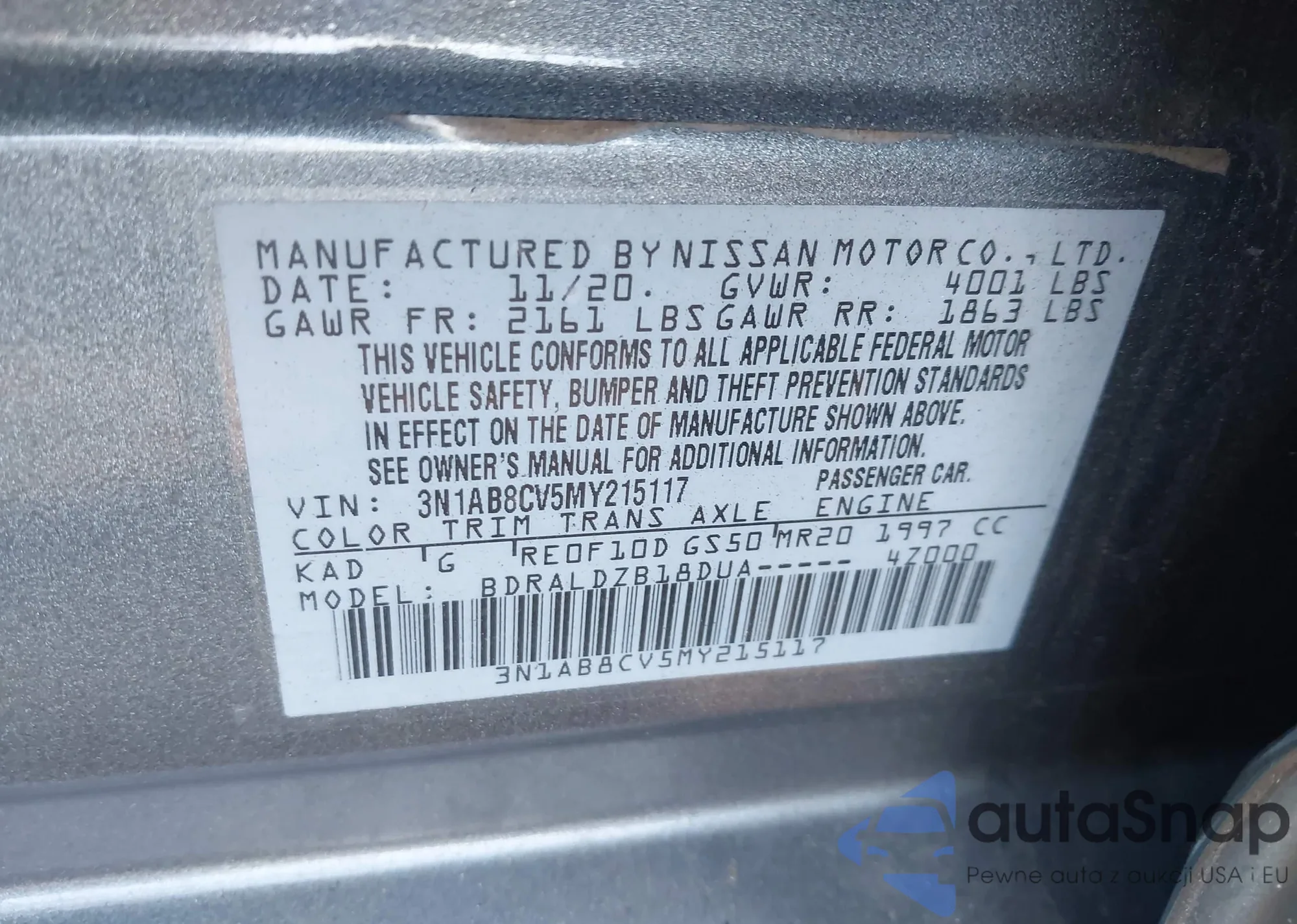 Kup Nissan Sentra VIII (B18) z USA