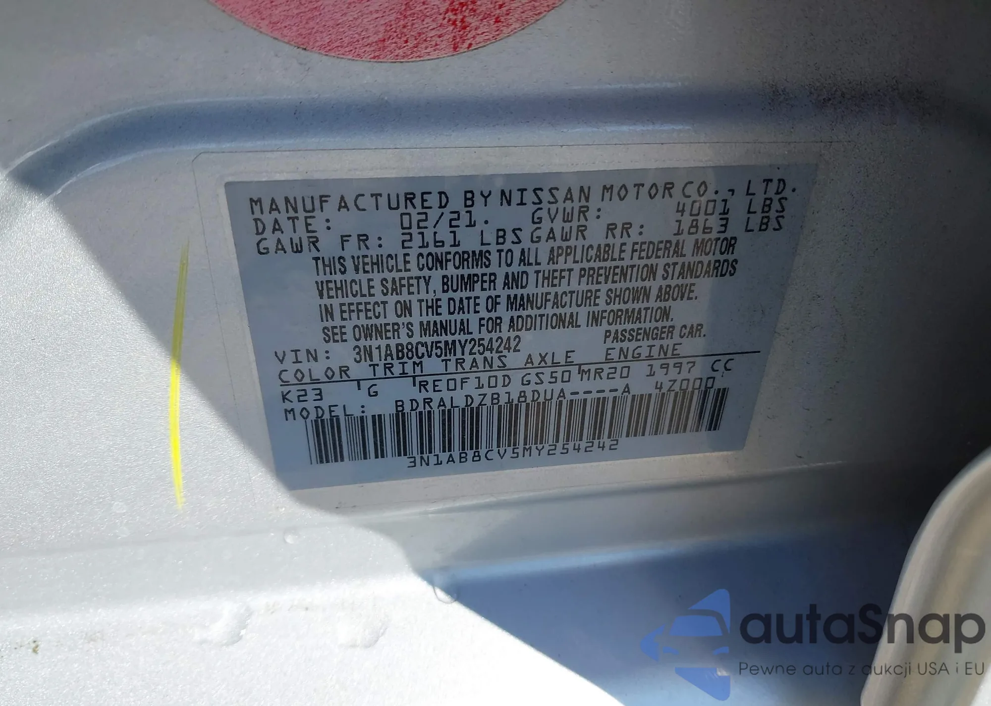 • VIN 3N1AB8CV5MY254242