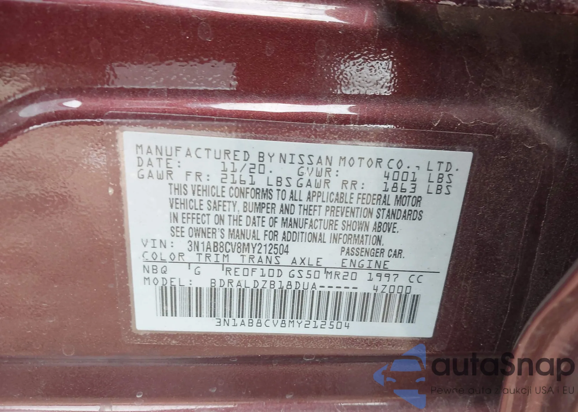 • VIN 3N1AB8CV8MY212504