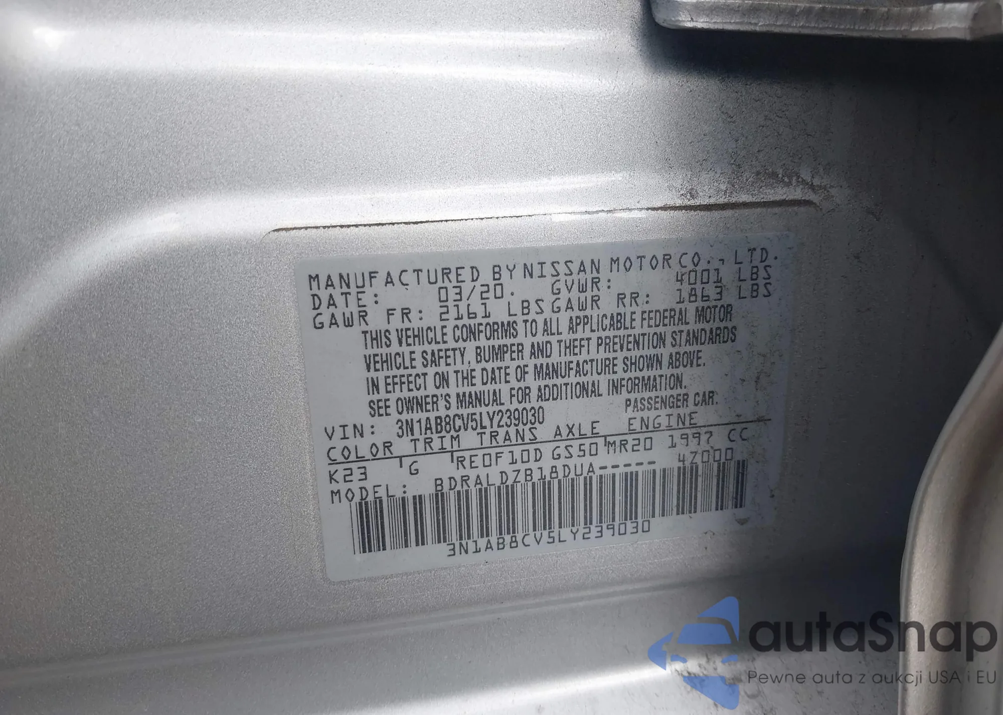 • VIN 3N1AB8CV5LY239030
