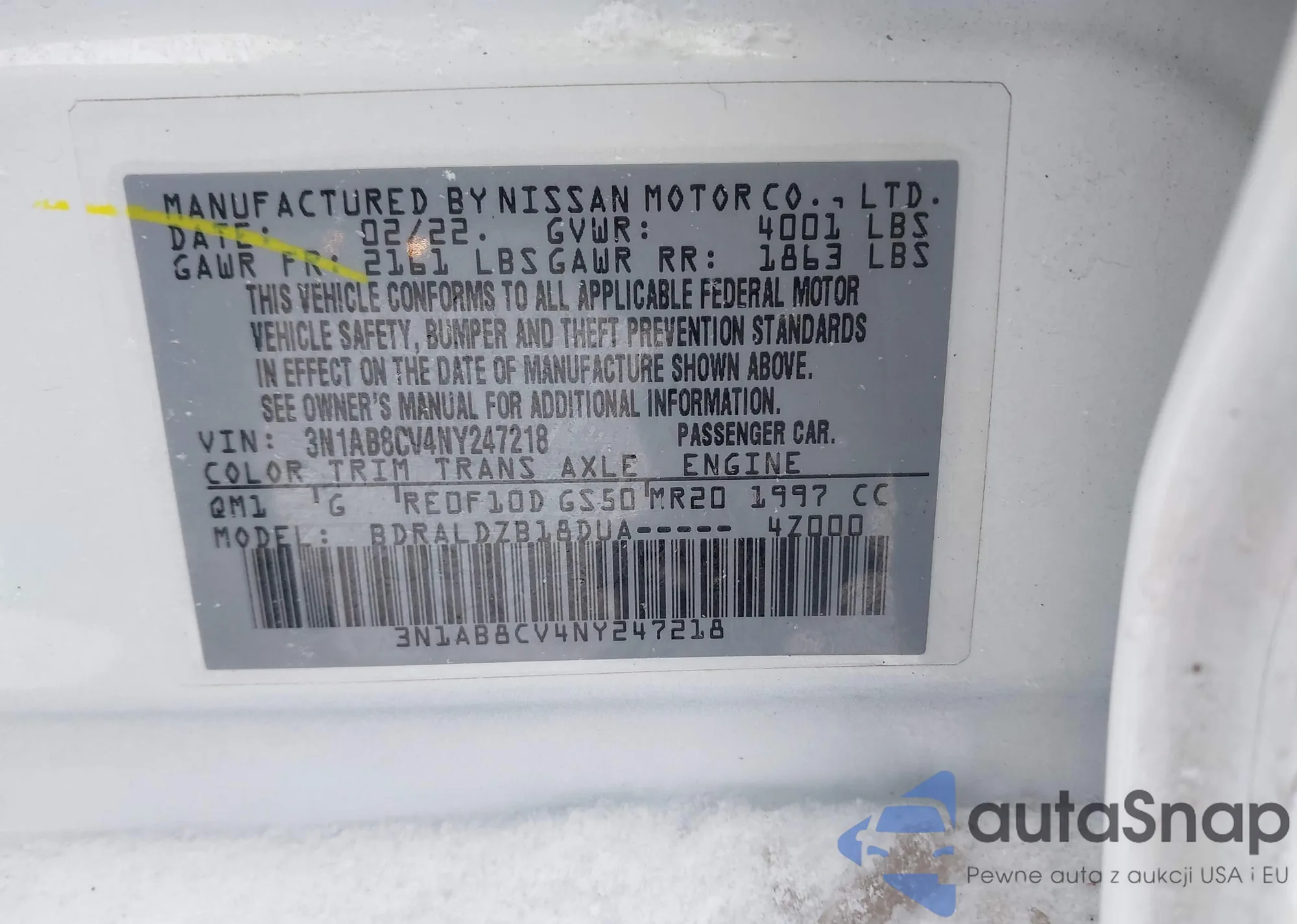 Kup Nissan Sentra VIII (B18) z USA