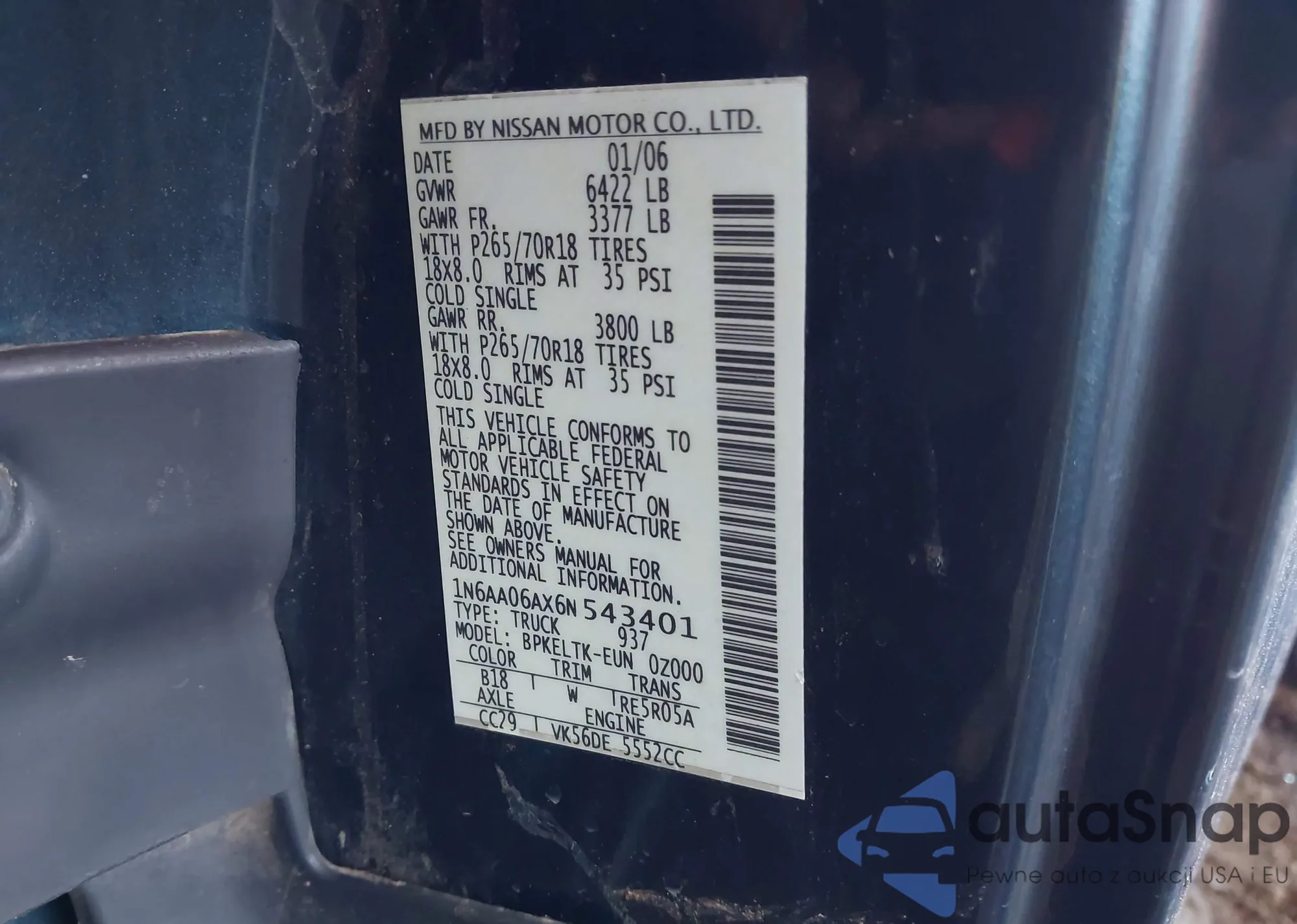 • VIN 1N6AA06AX6N543401