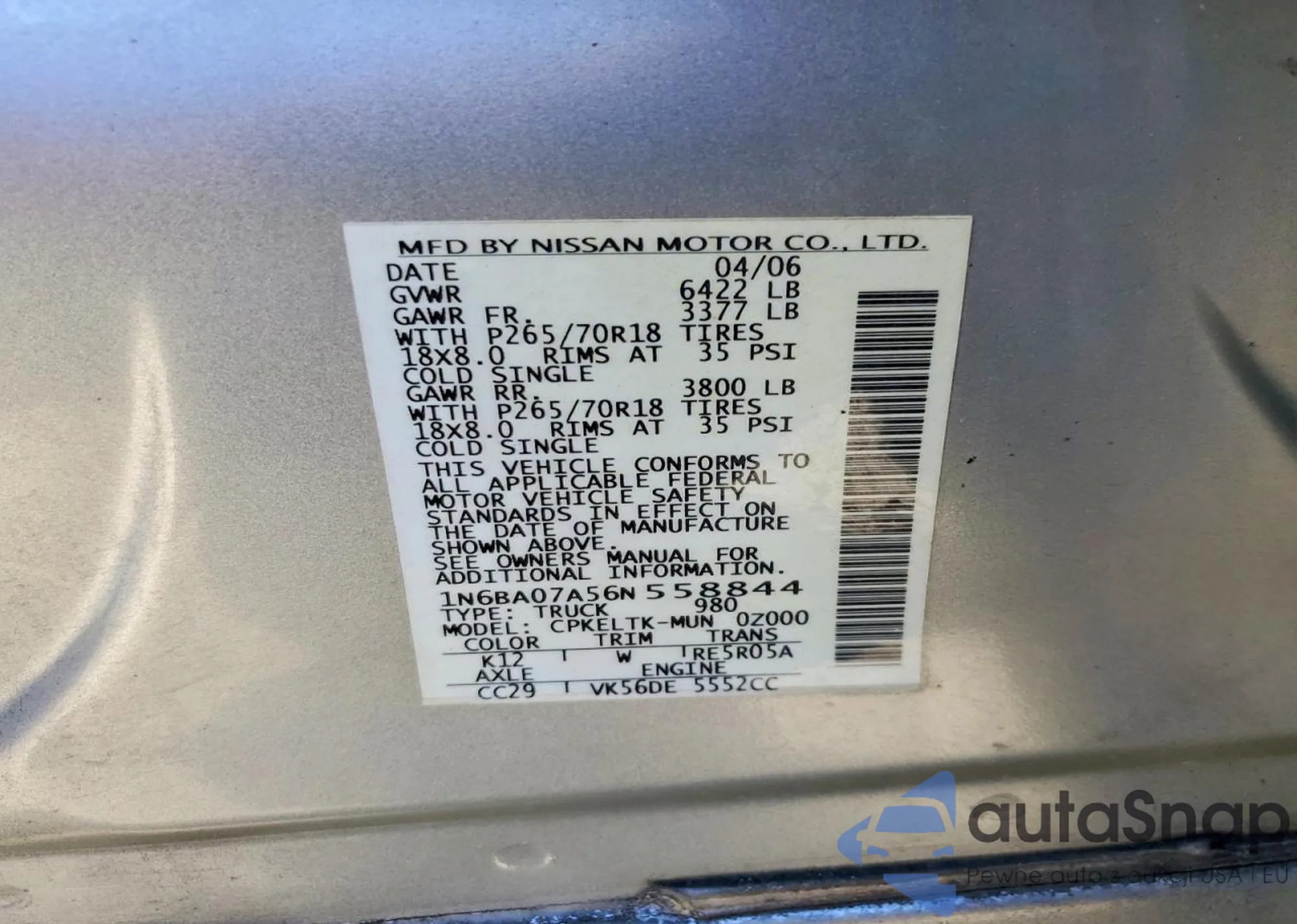 • VIN 1N6BA07A56N558844