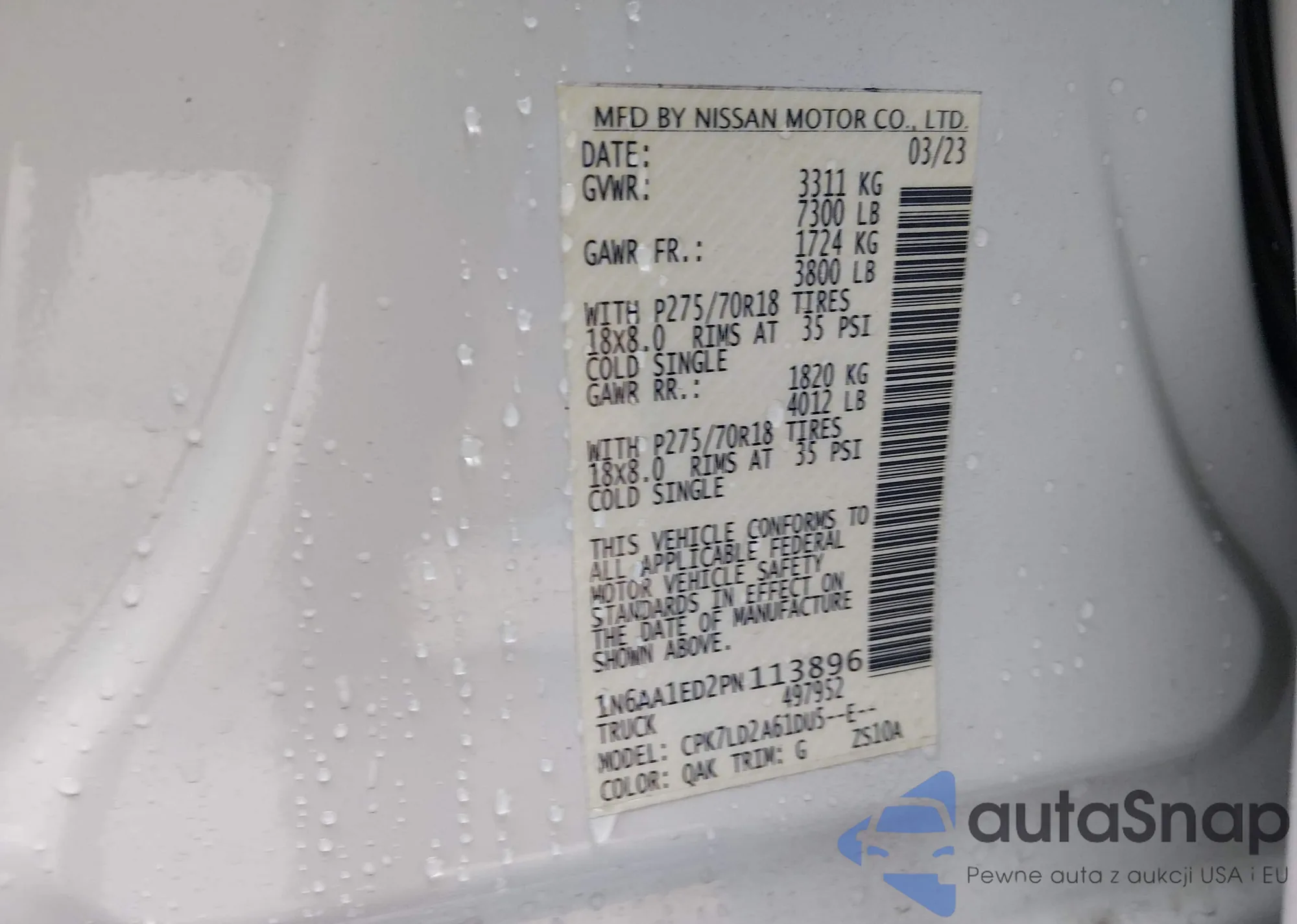 LOT: 44295489 VIN: 1N6AA1ED2PN113896