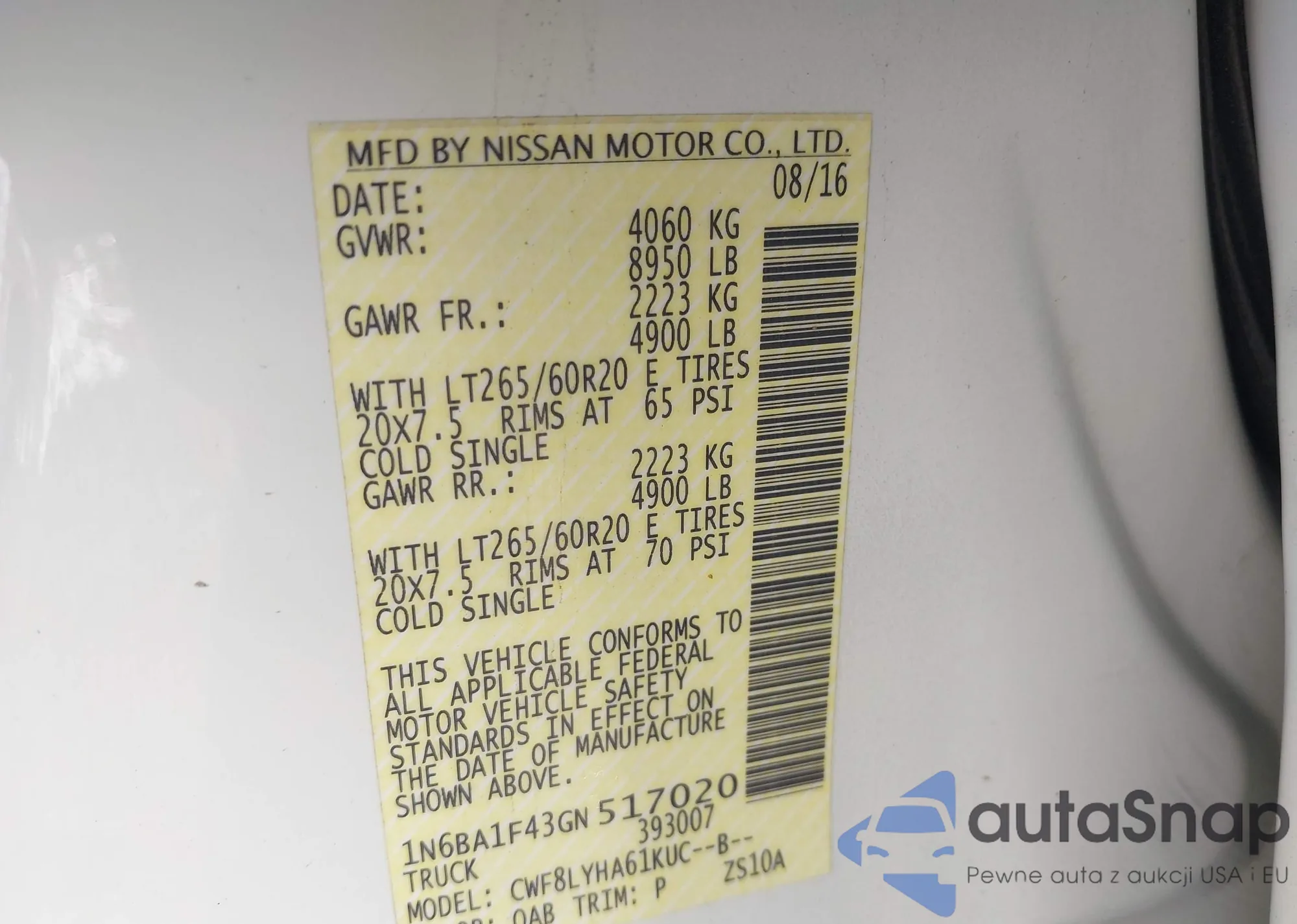 • VIN 1N6BA1F43GN517020
