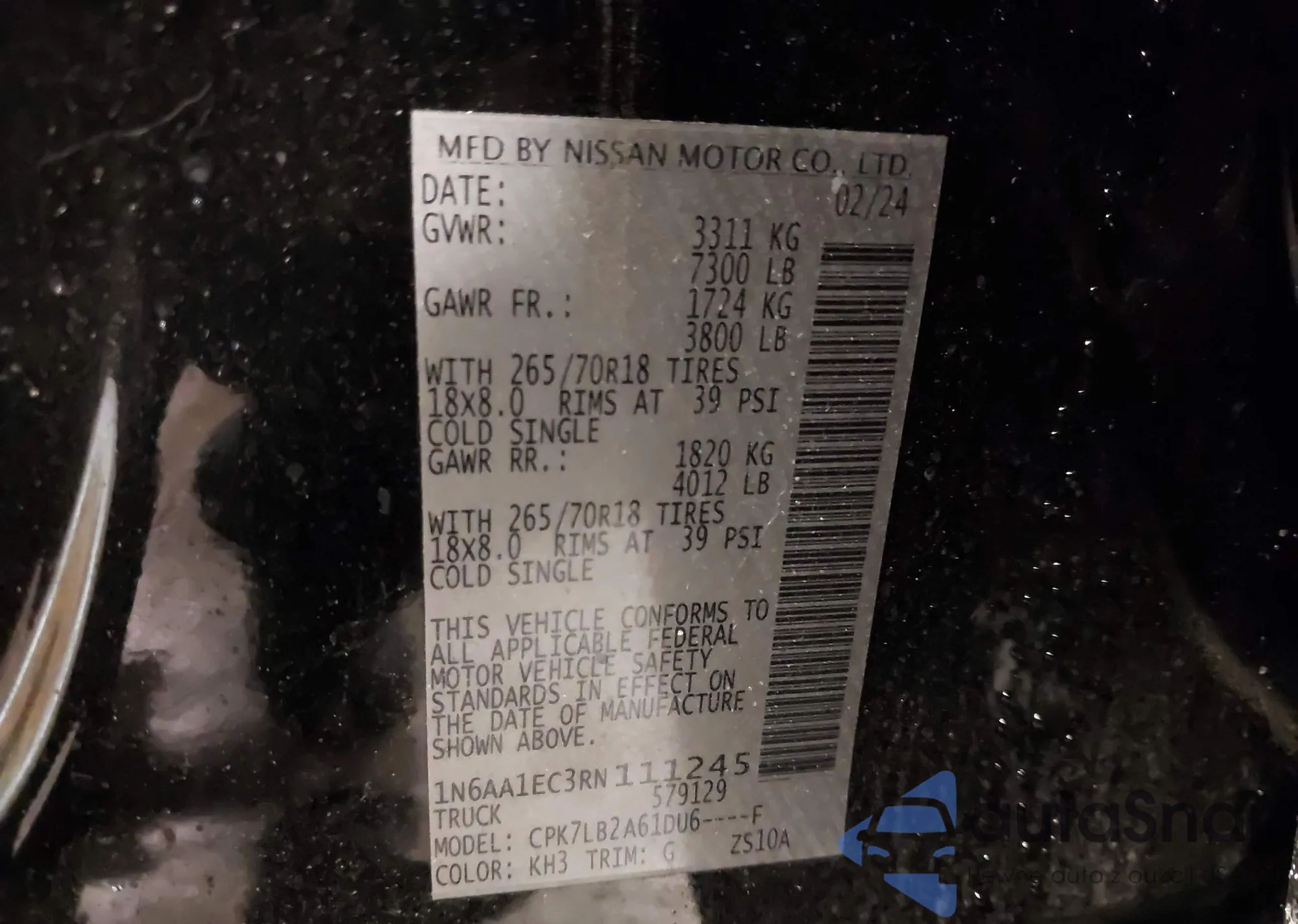 LOT: 94936855 VIN: 1N6AA1CK3JN505679