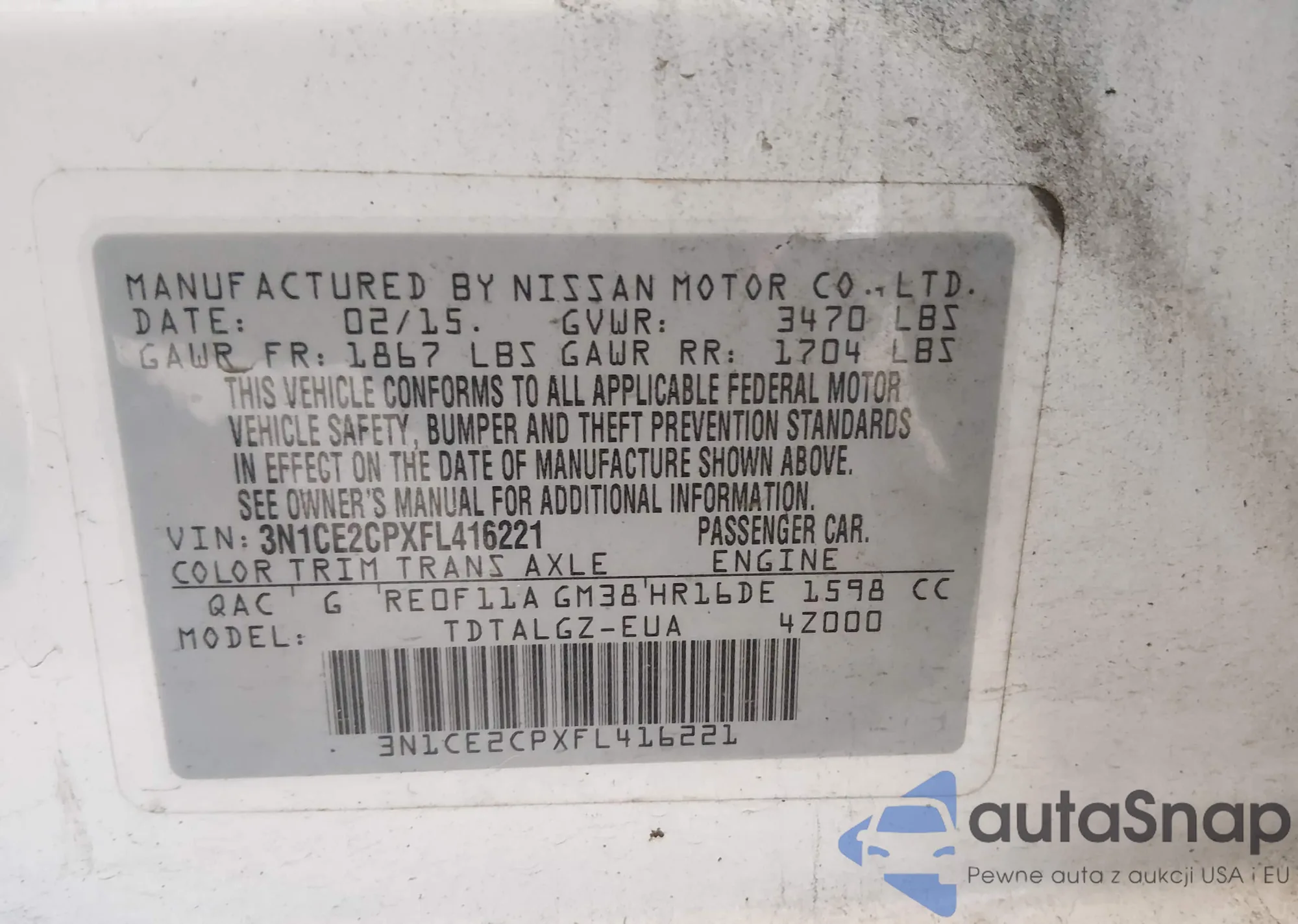 • VIN 3N1CE2CPXFL416221