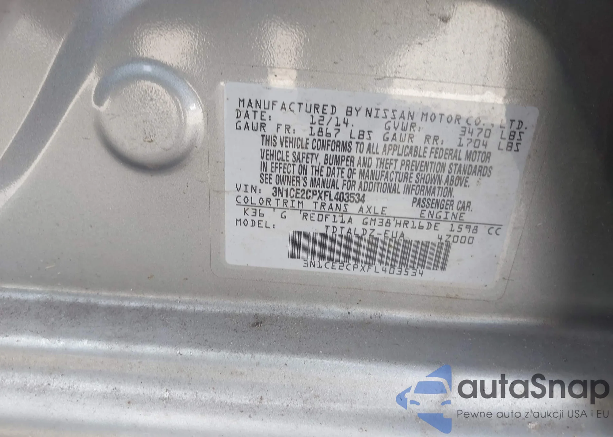 • VIN 3N1CE2CPXFL403534