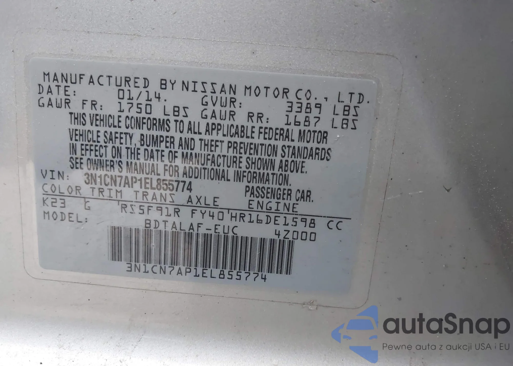 • VIN 3N1CN7AP1EL855774
