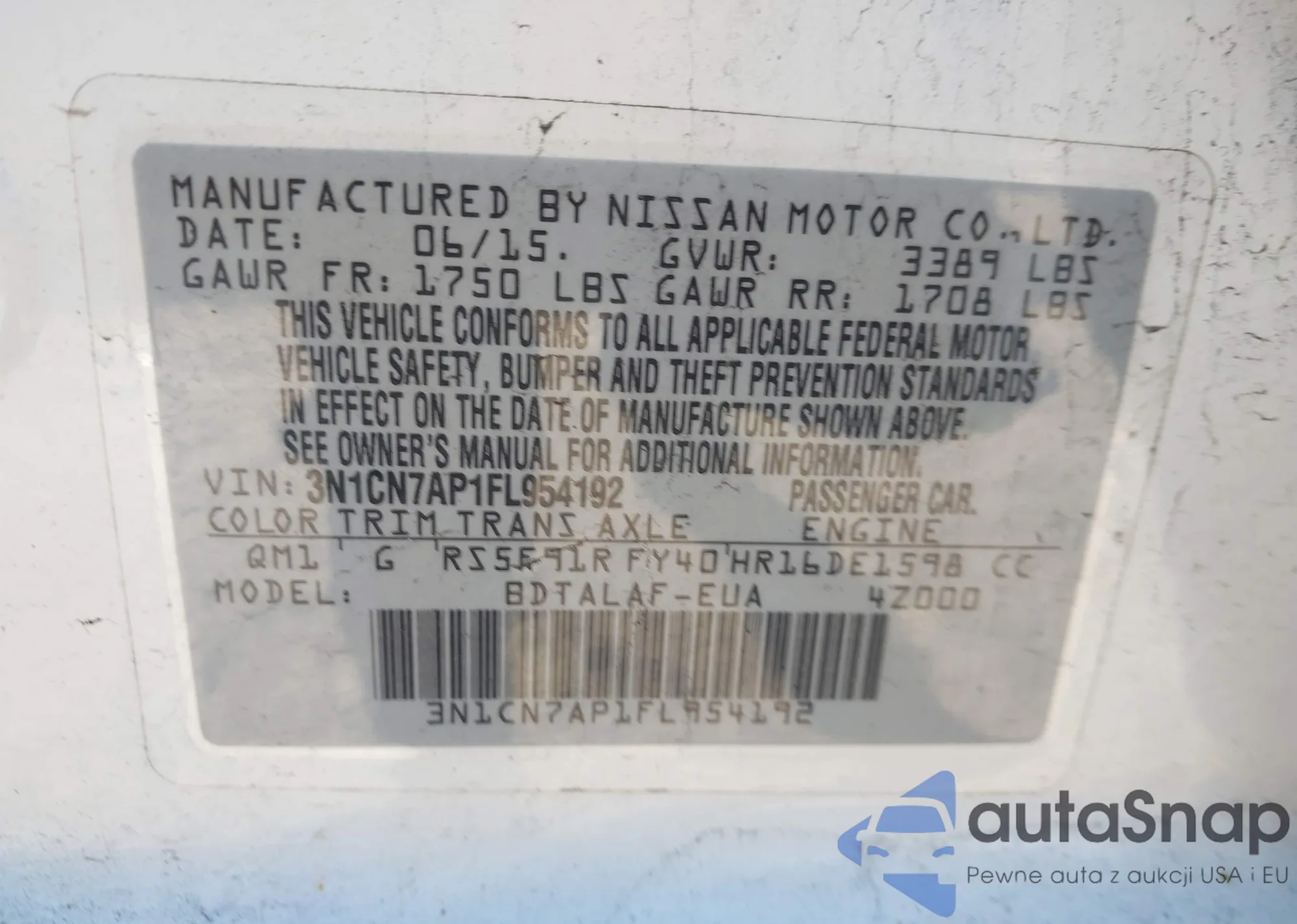 • VIN 3N1CN7AP1FL954192