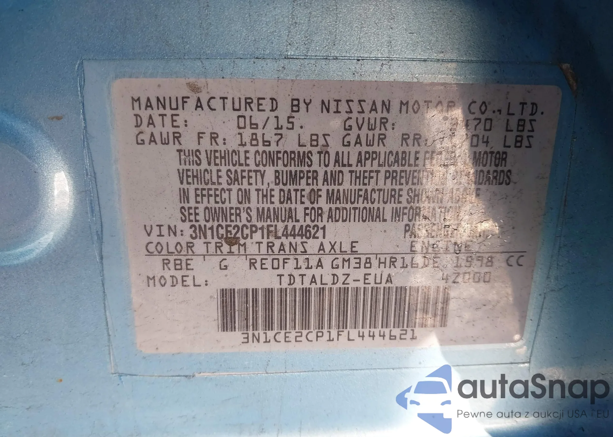 • VIN 3N1CE2CP1FL444621