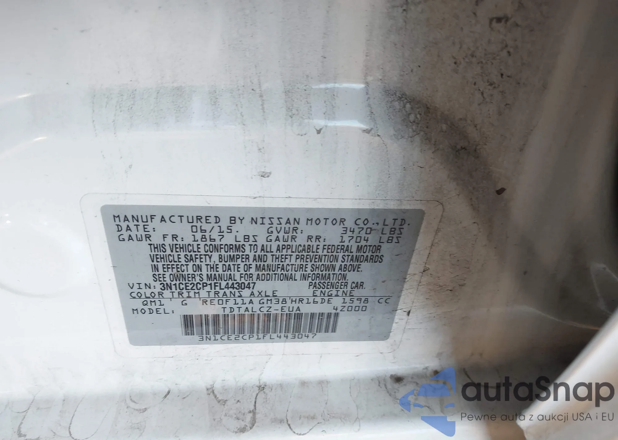 • VIN 3N1CE2CP1FL443047