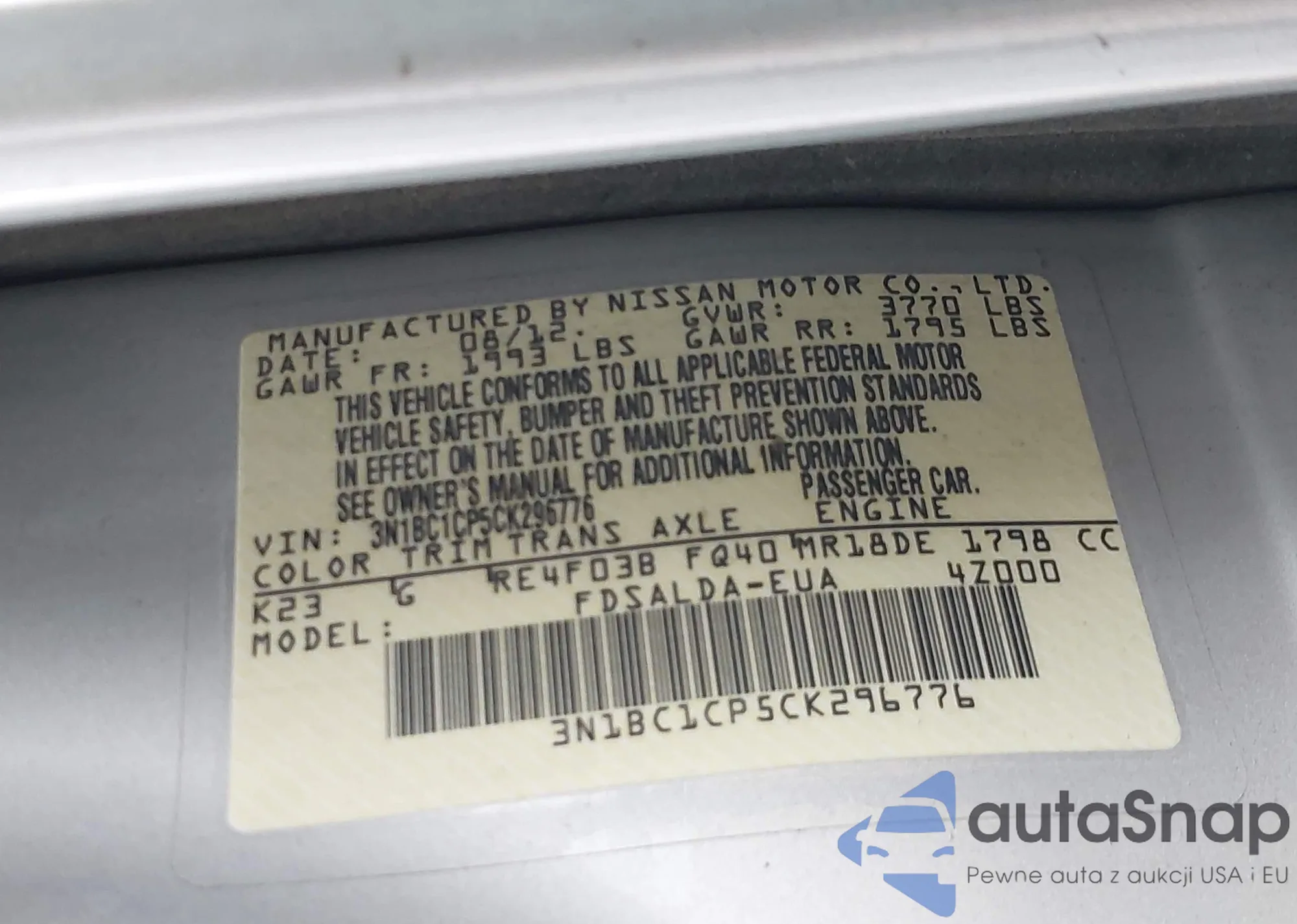• VIN 3N1BC1CP5CK296776
