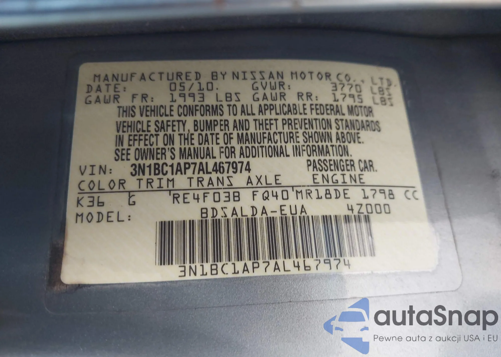 • VIN 3N1BC1AP7AL467974