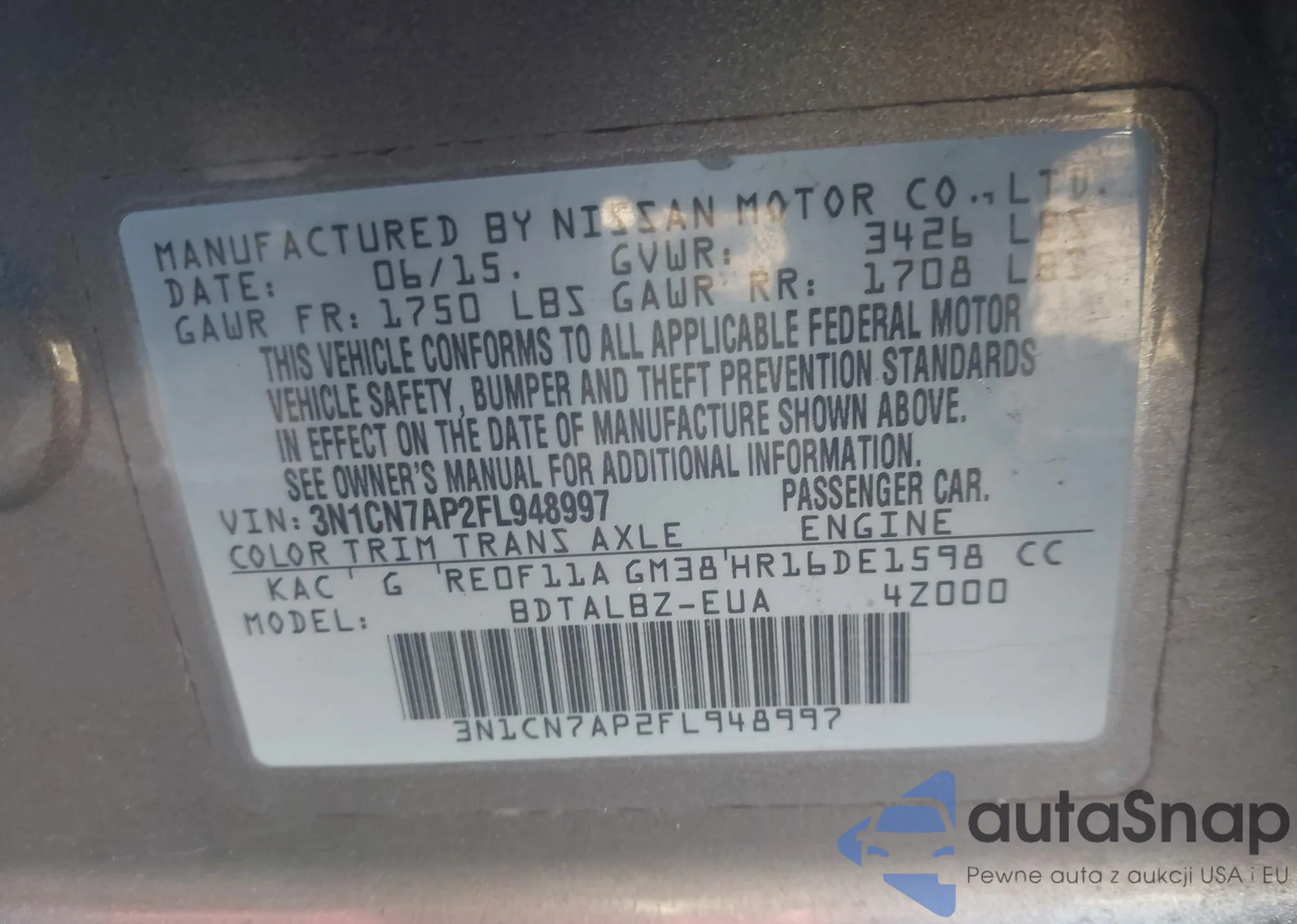 • VIN 3N1CN7AP2FL948997
