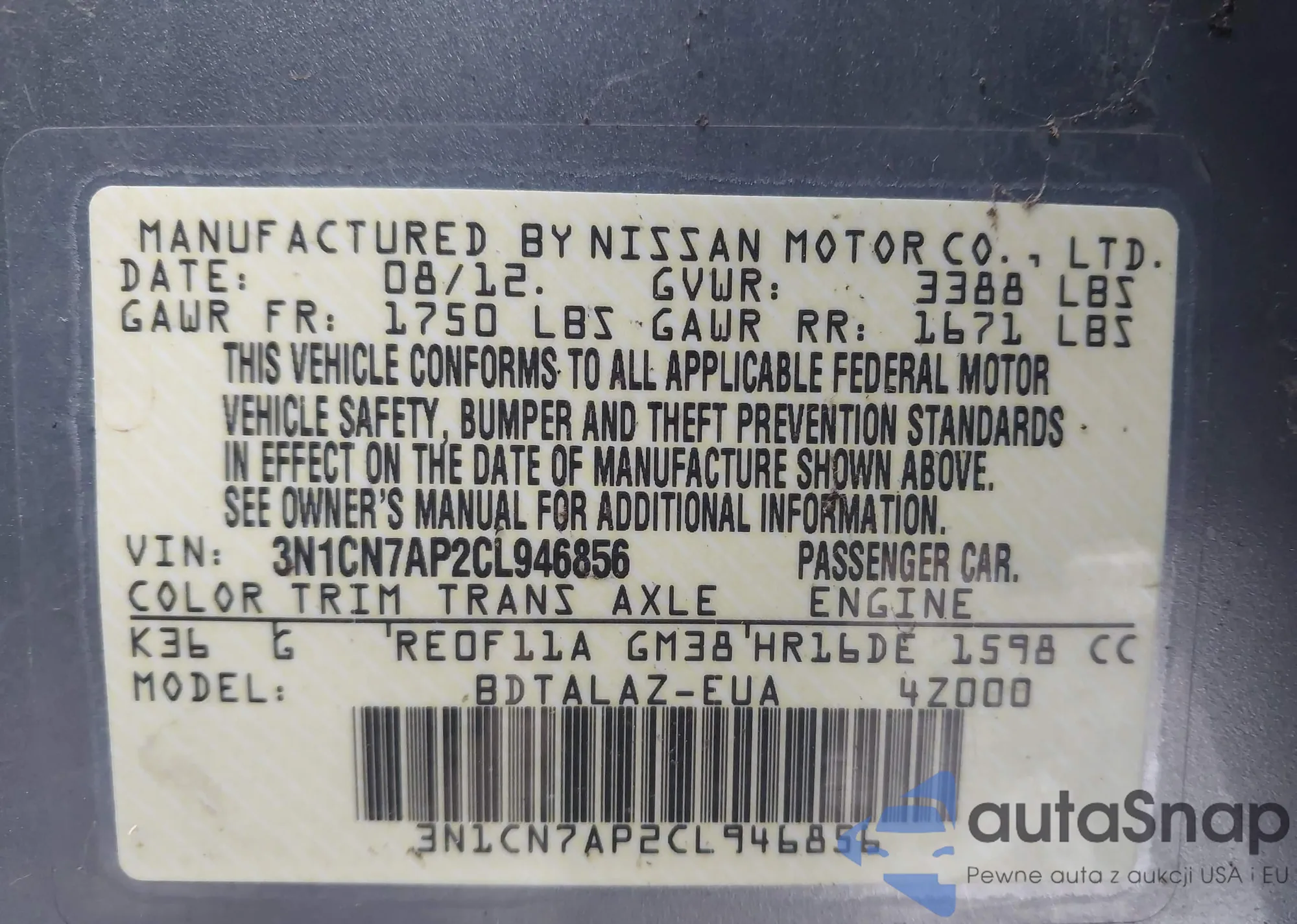 • VIN 3N1CN7AP2CL946856