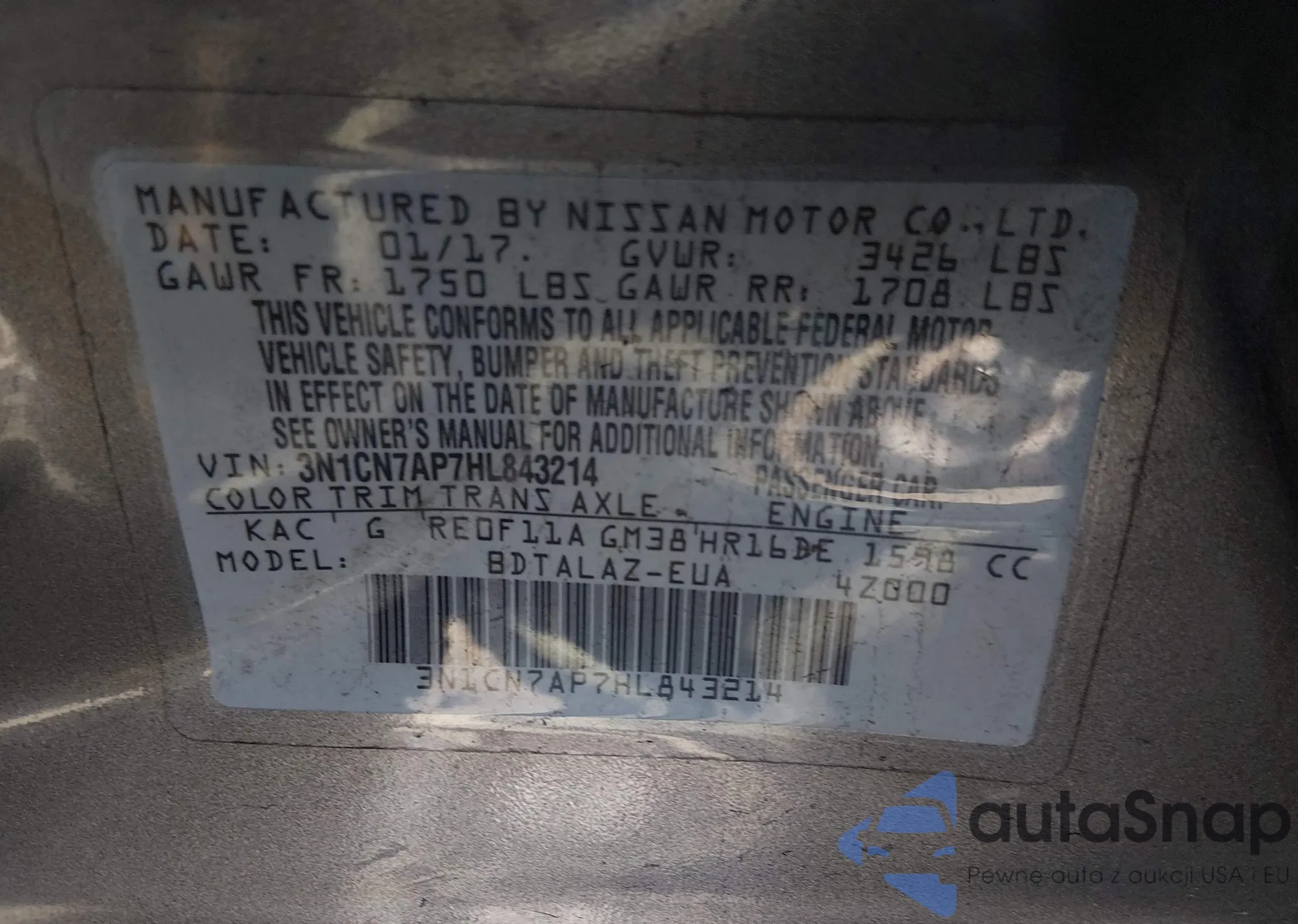 • VIN 3N1CN7AP7HL843214