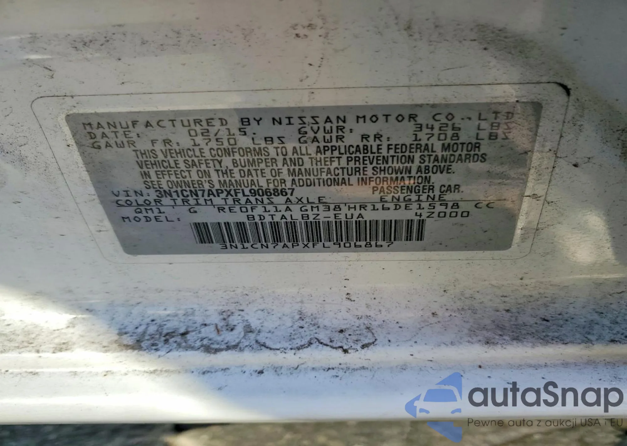 • VIN 3N1CN7APXFL906867