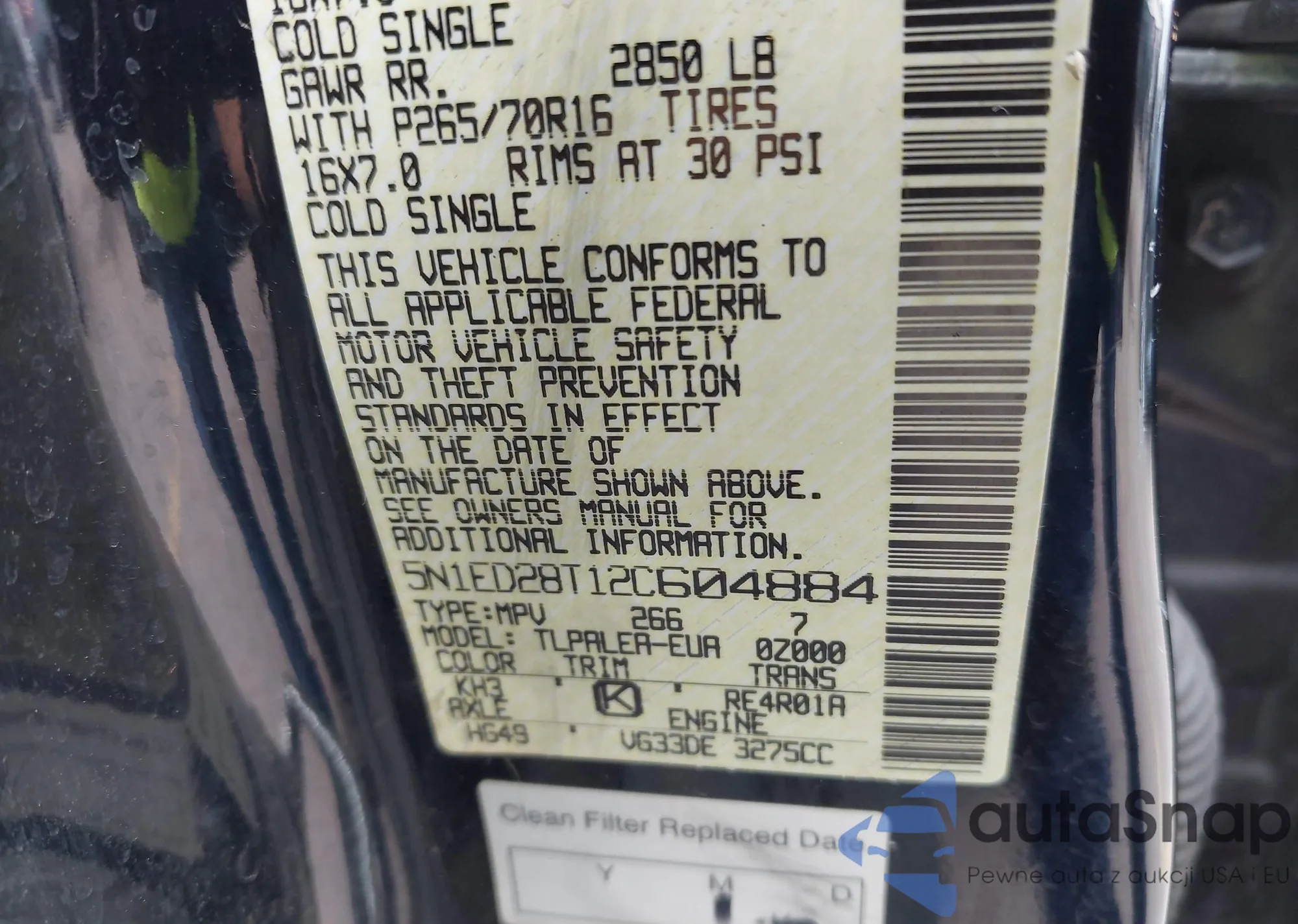 • VIN 5N1AN0NW2BC515078