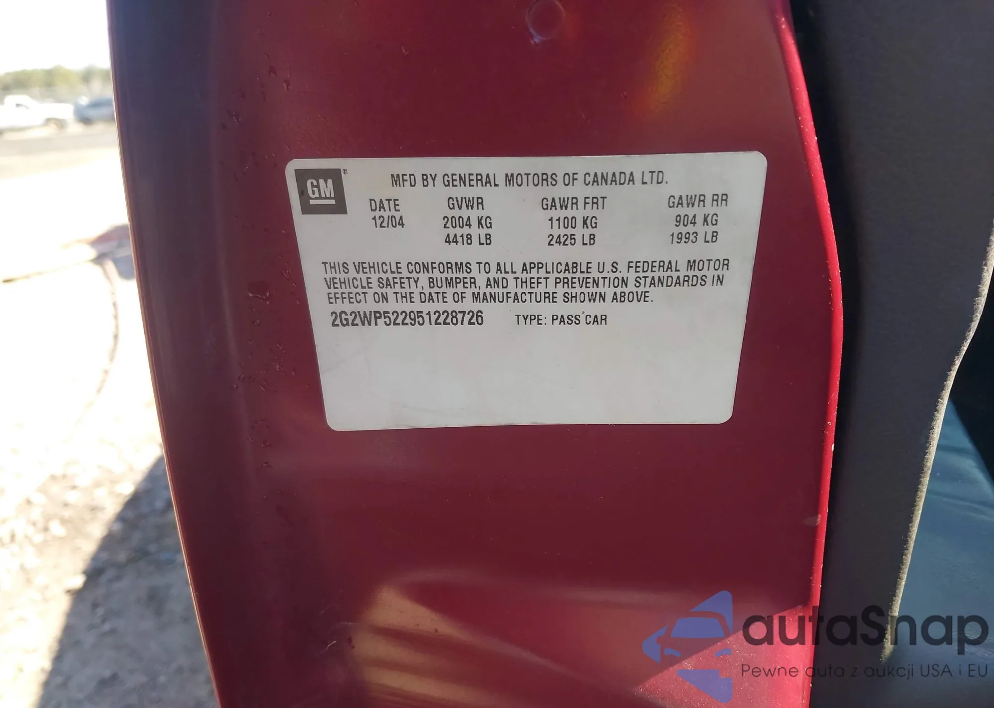 • VIN 2G2WP522951228726