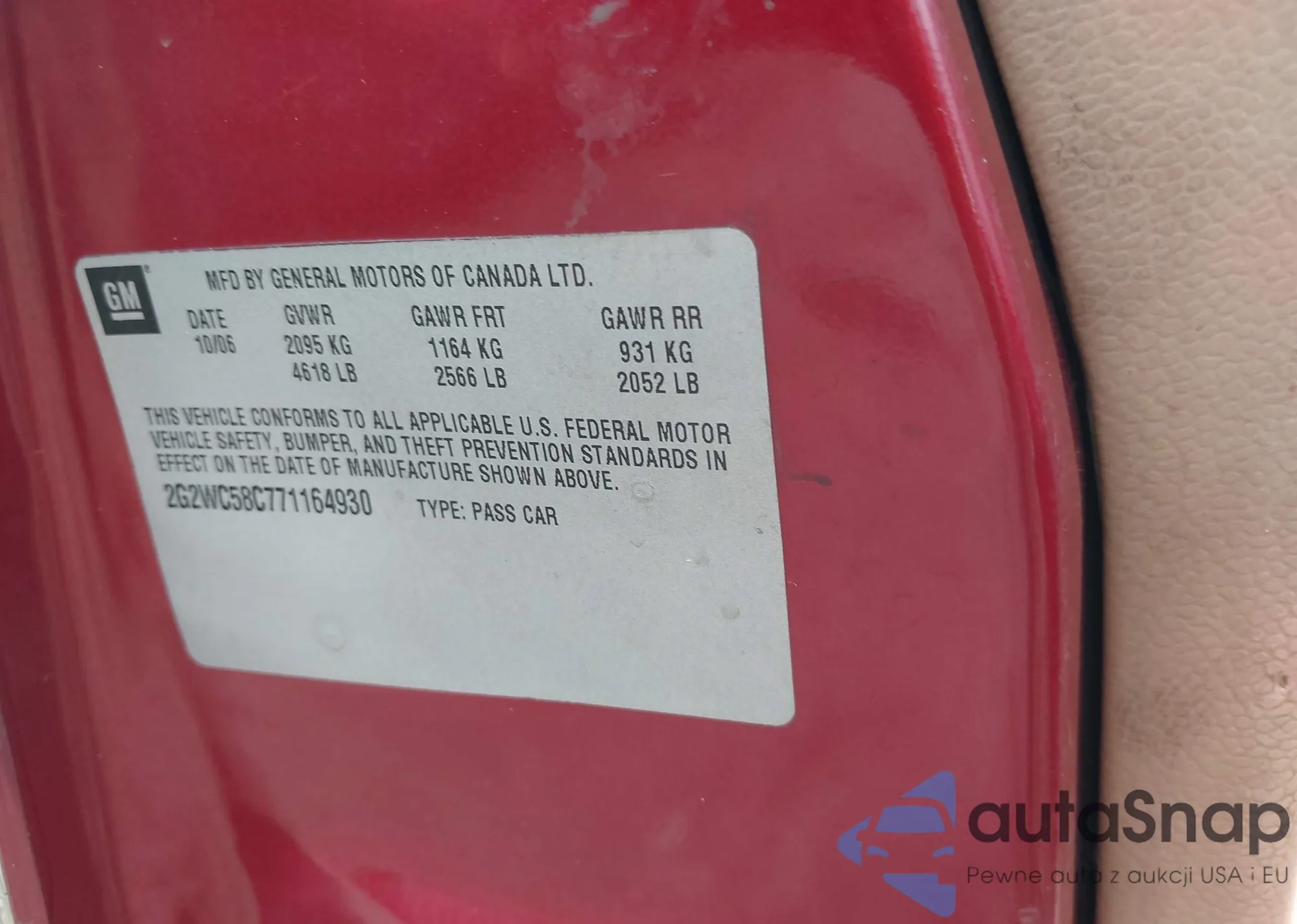 • VIN 2G2WC58C771164930