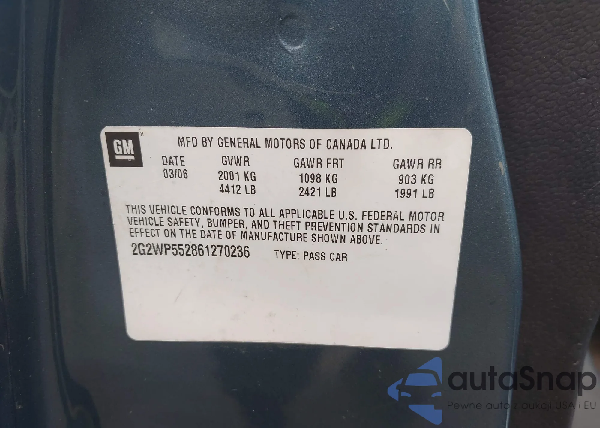 • VIN 2G2WP552861270236