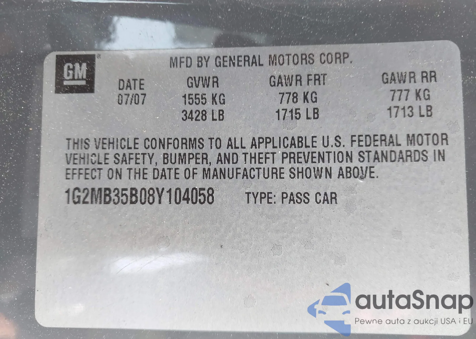 • VIN 1G2MB35B87Y104503