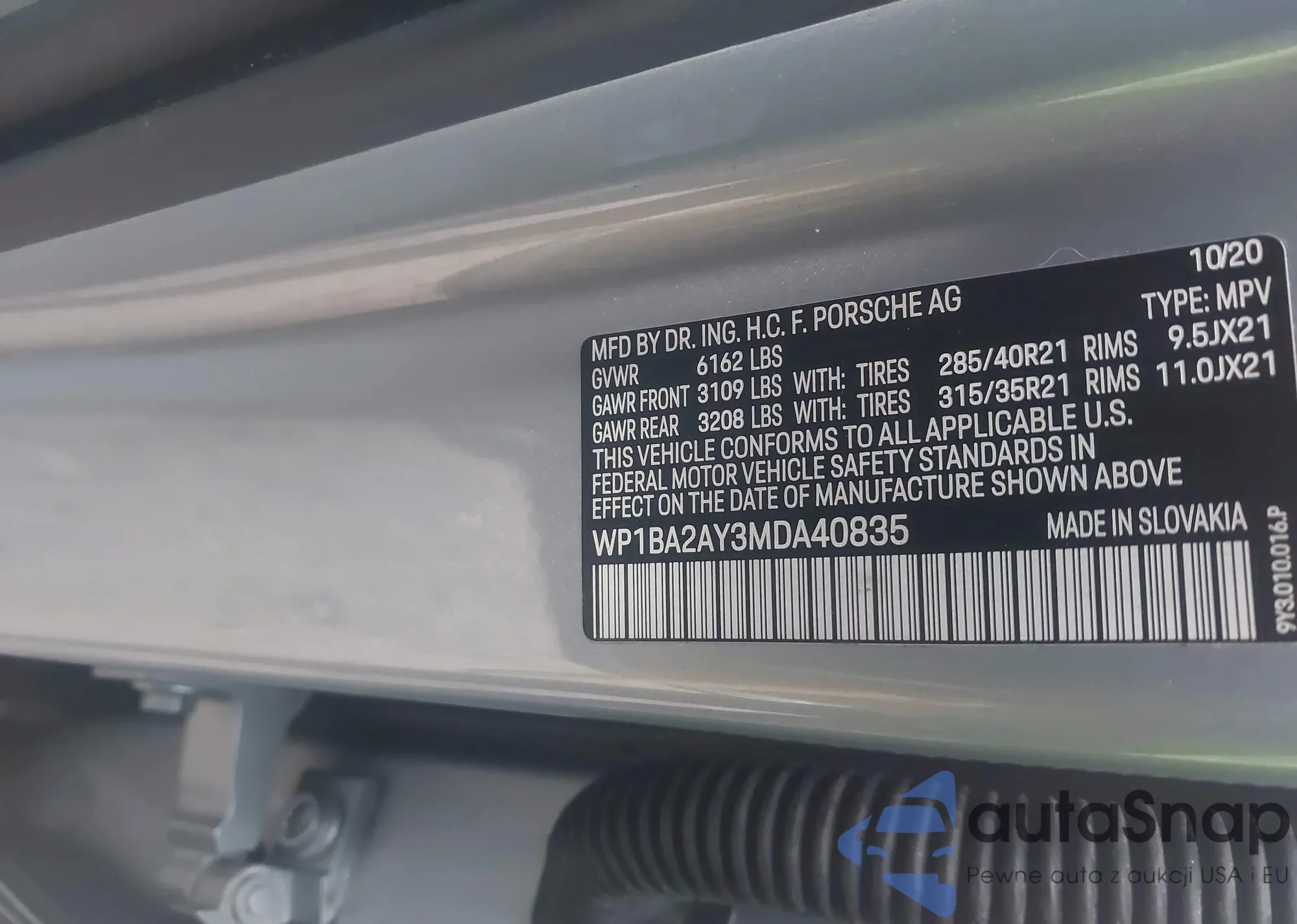 LOT: 44316251 VIN: WP1BA2AY3MDA40835