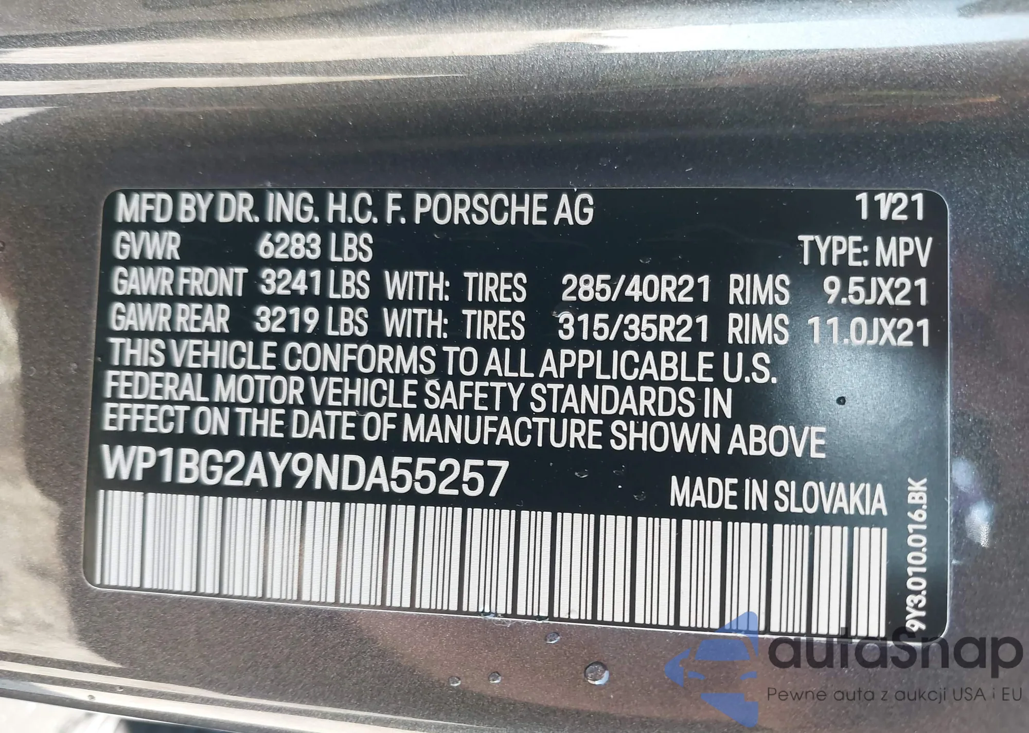 • VIN WP1BG2AY9NDA55257