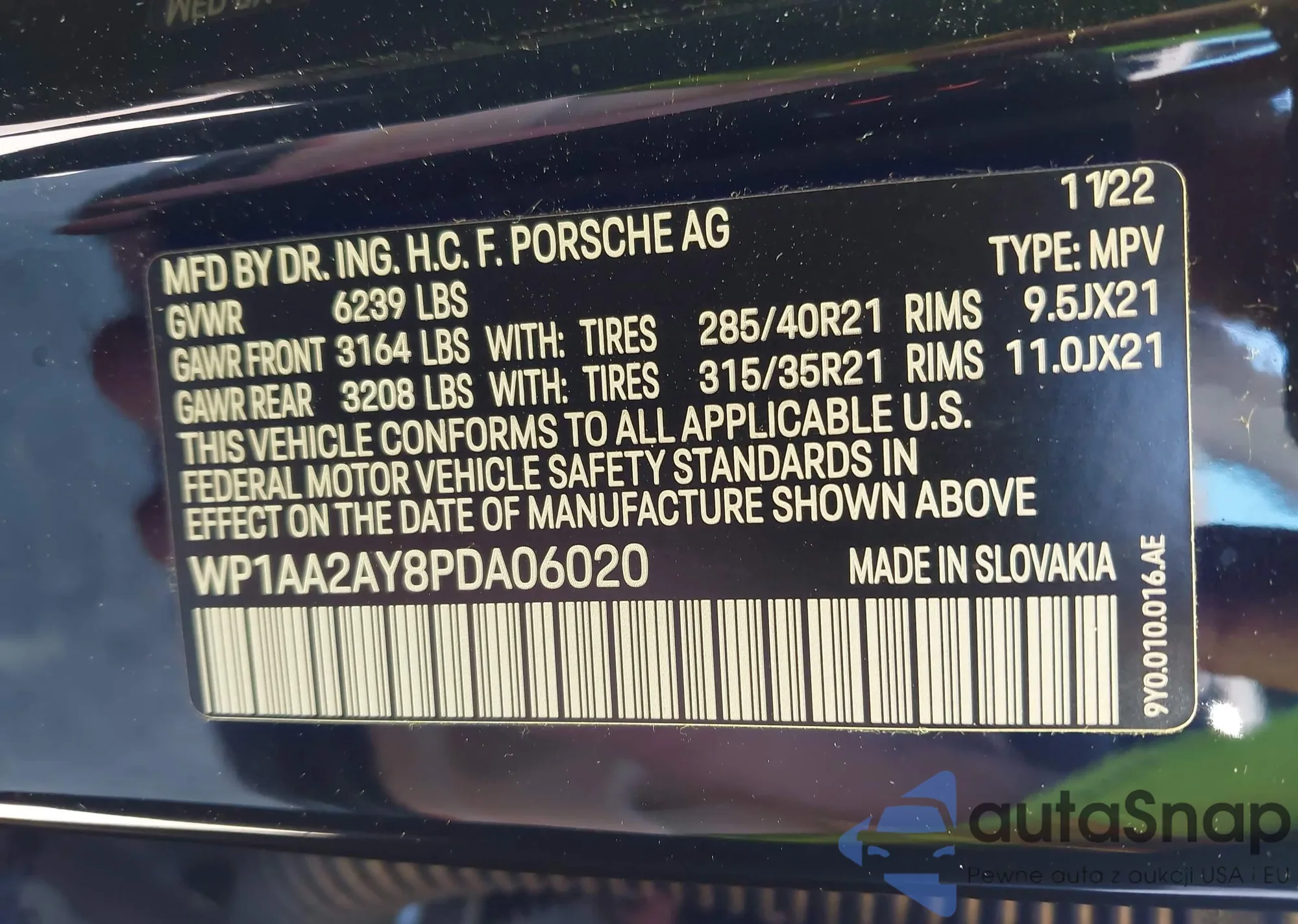 • VIN WP1AA2AY8PDA06020
