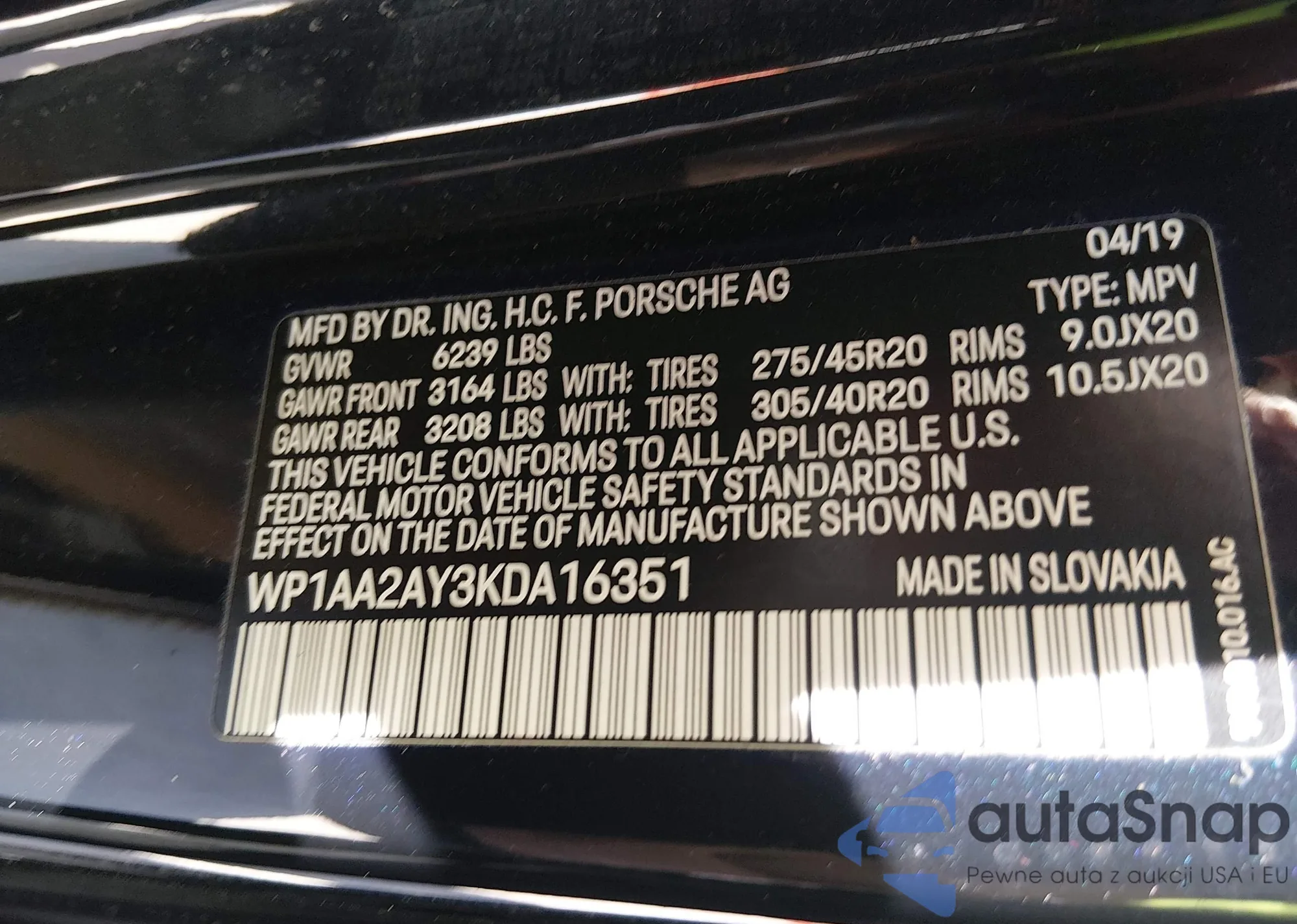 • VIN WP1AA2AY3KDA16351