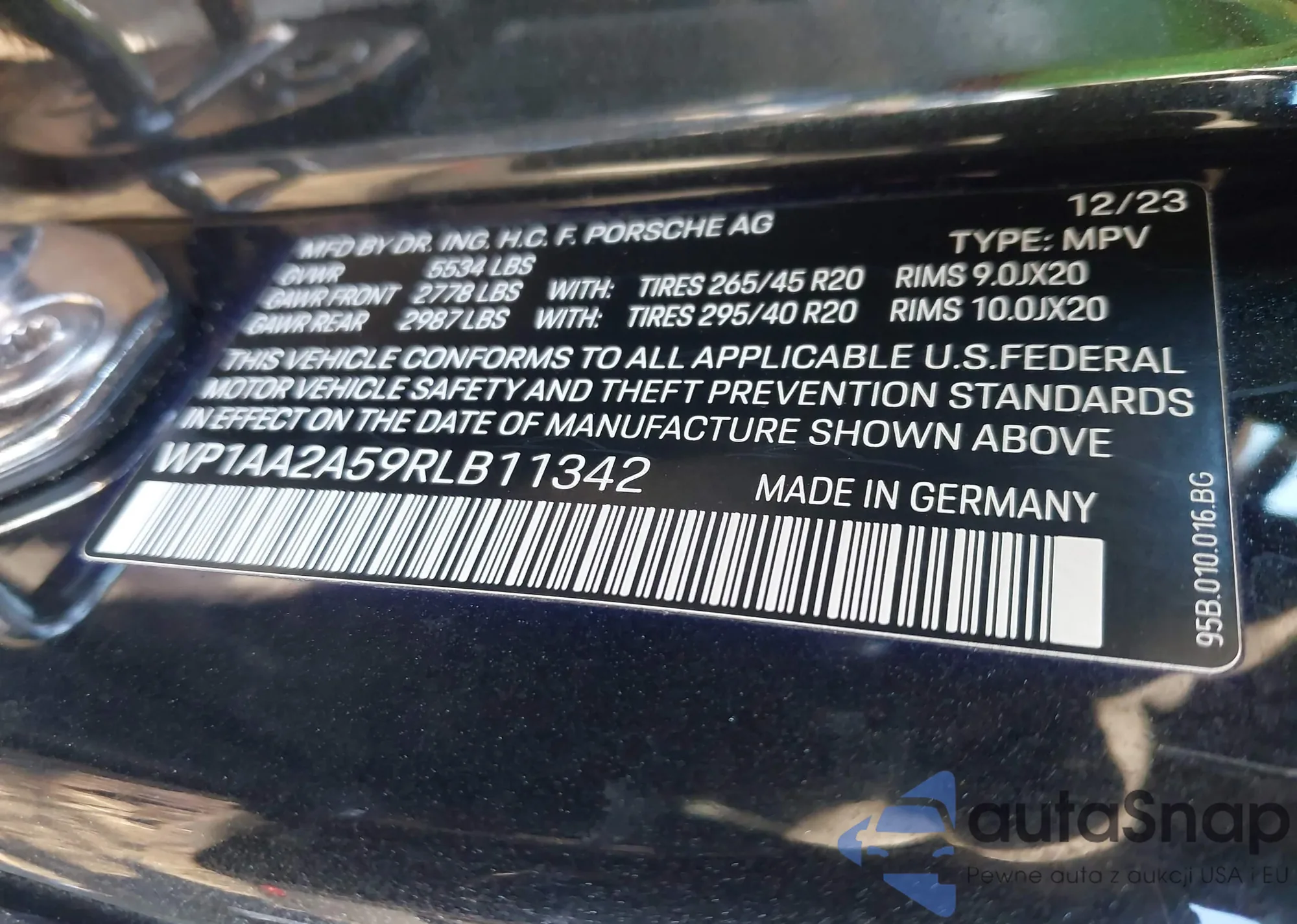 LOT: 44340411 VIN: WP1AA2A59RLB11342