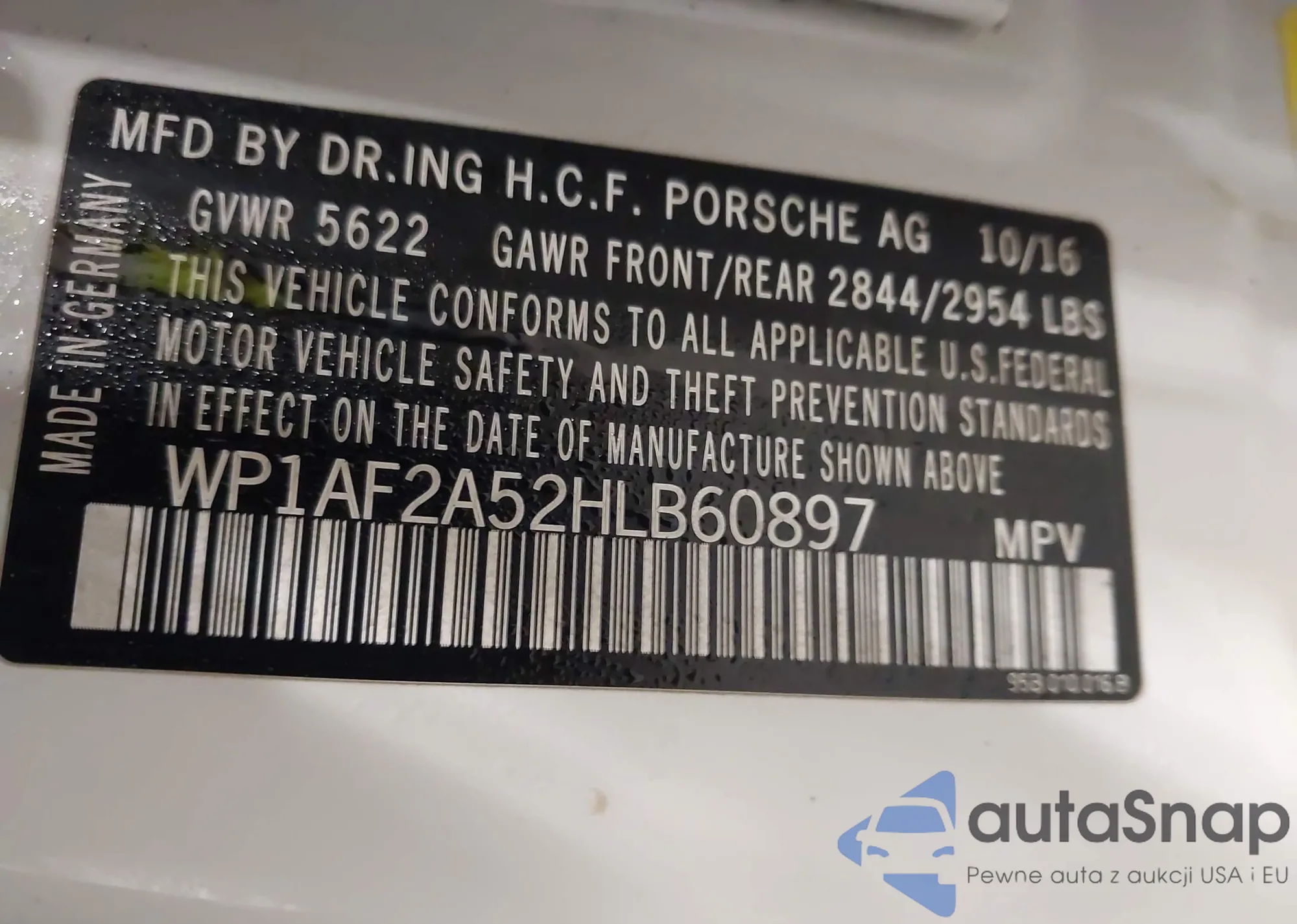 LOT: 44365791 VIN: WP1AF2A52HLB60897