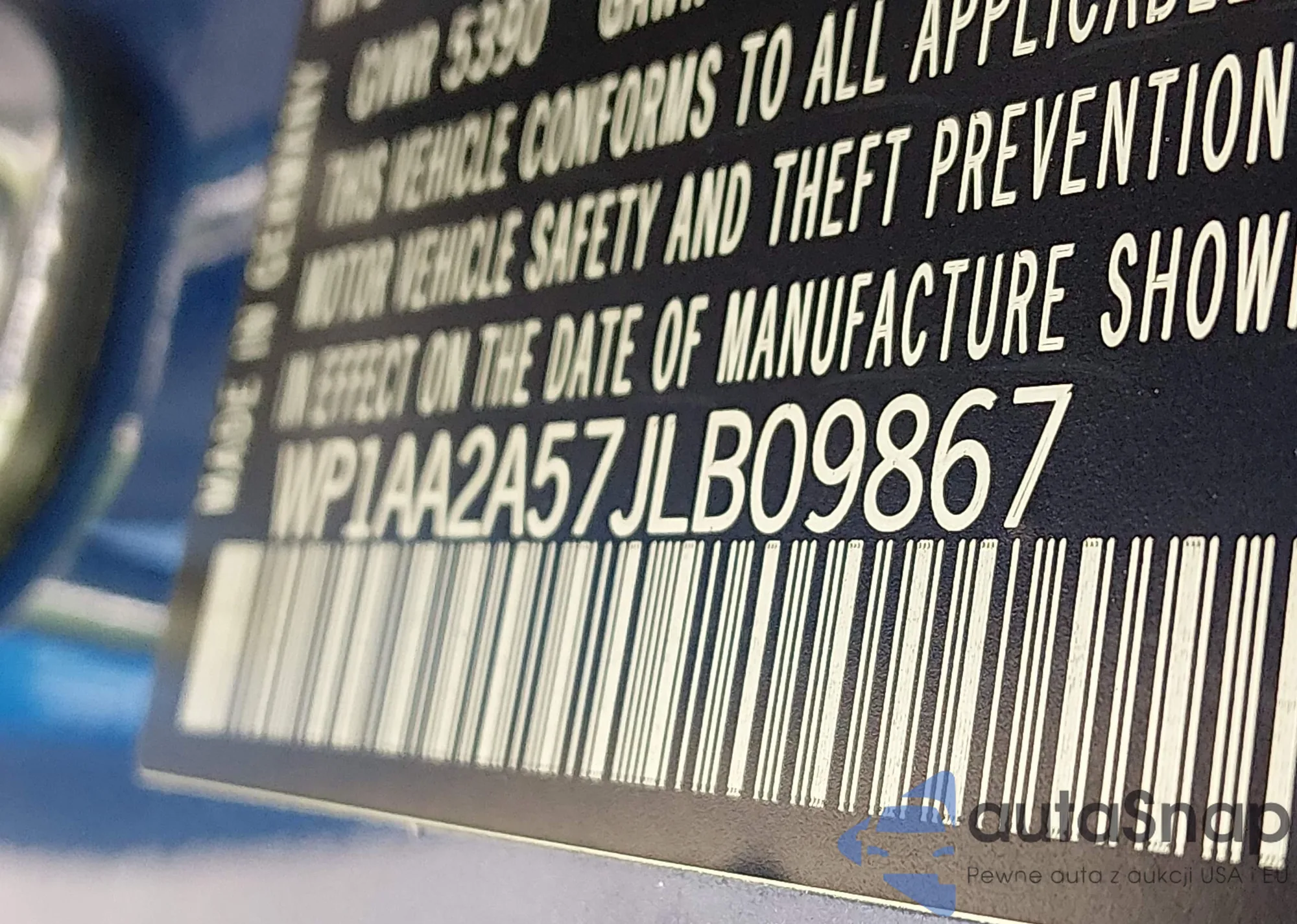 LOT: 44383997 VIN: WP1AA2A57JLB09867