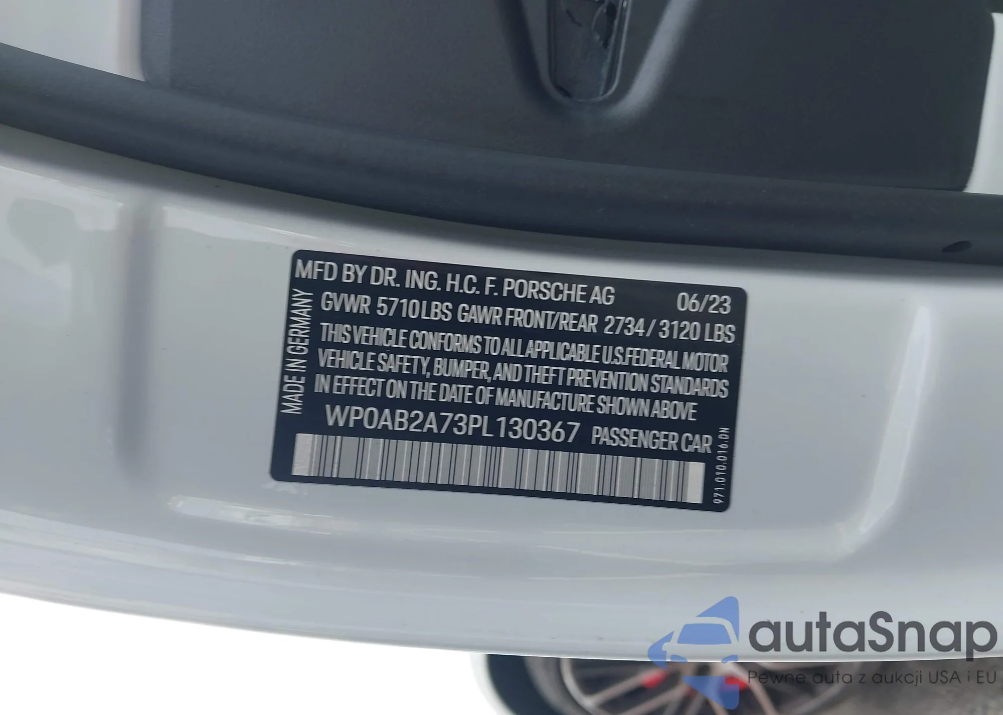 LOT: 43985734 VIN: WP0AG2A75PL135619