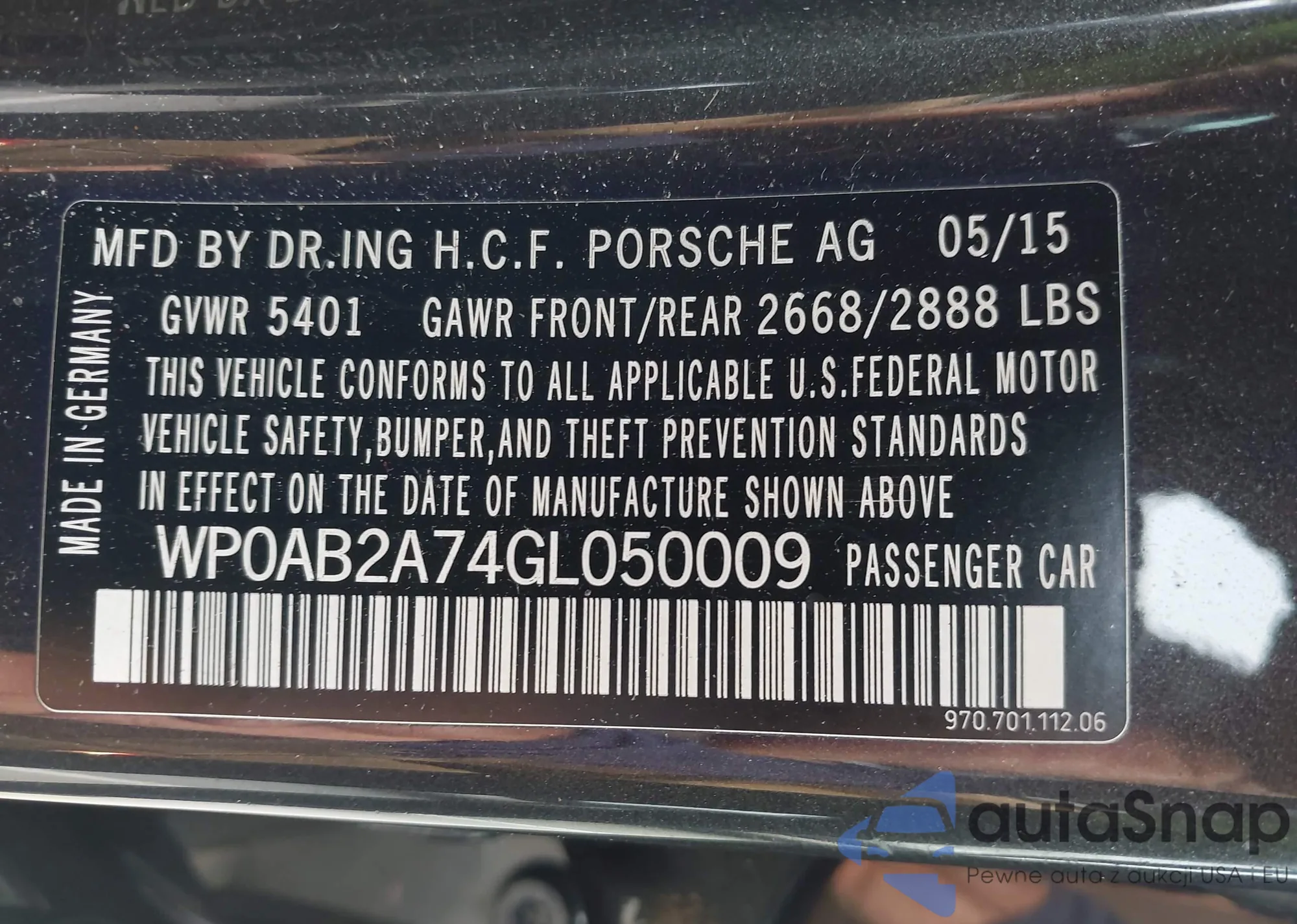 LOT: 44439972 VIN: WP0AB2A74GL050009