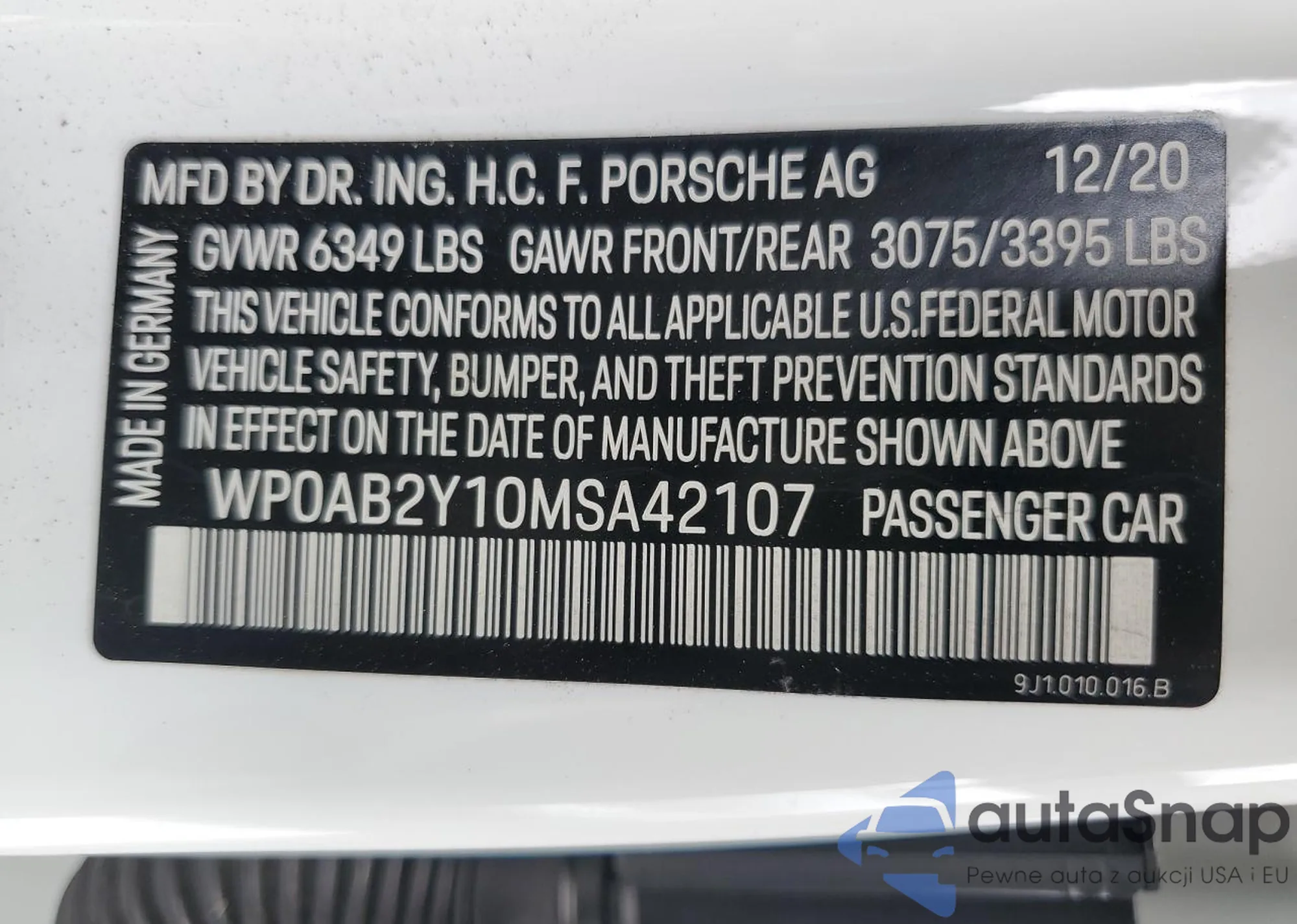 Kup Porsche Taycan I z USA