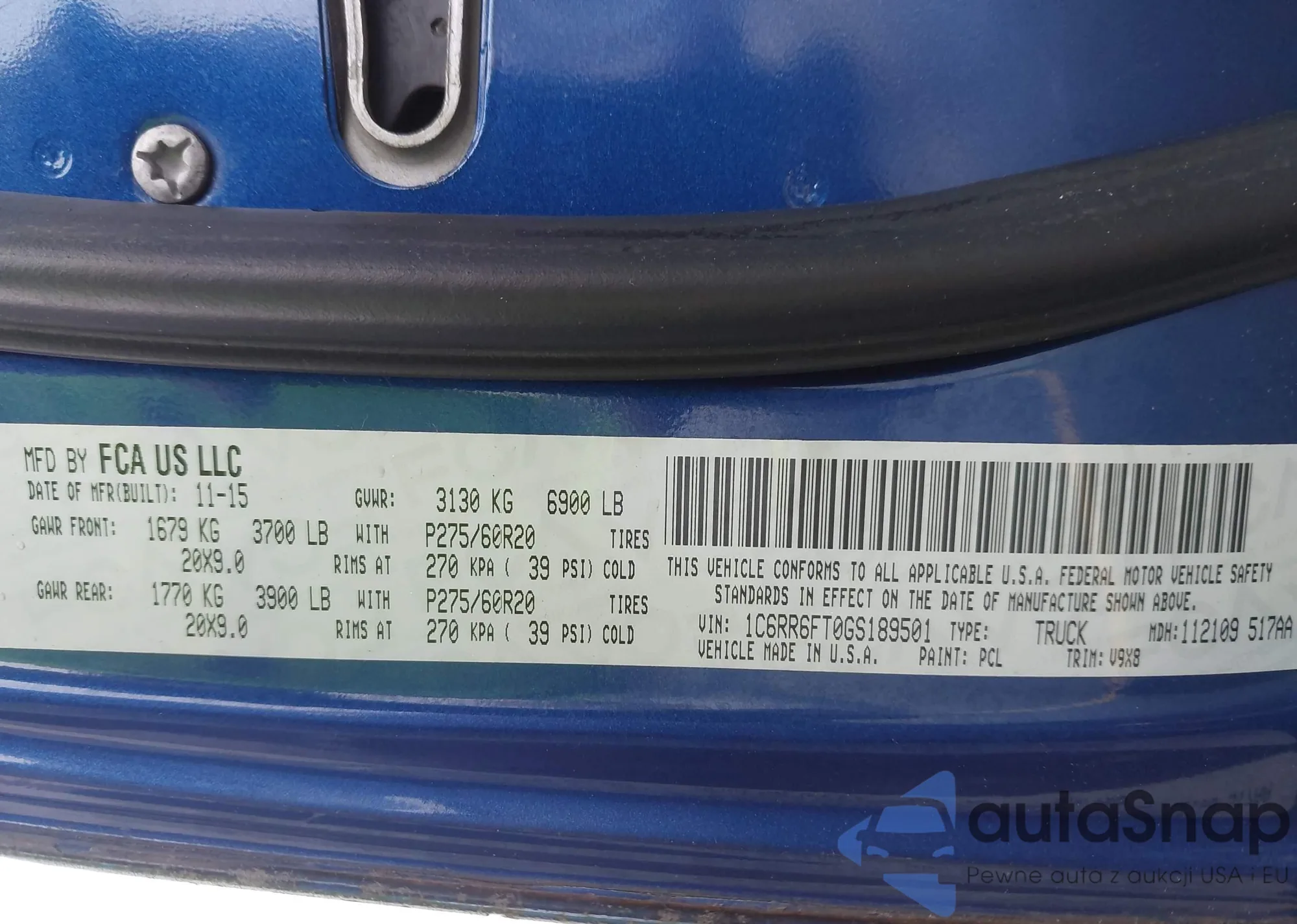 • VIN 1C6RR6FT0GS189501
